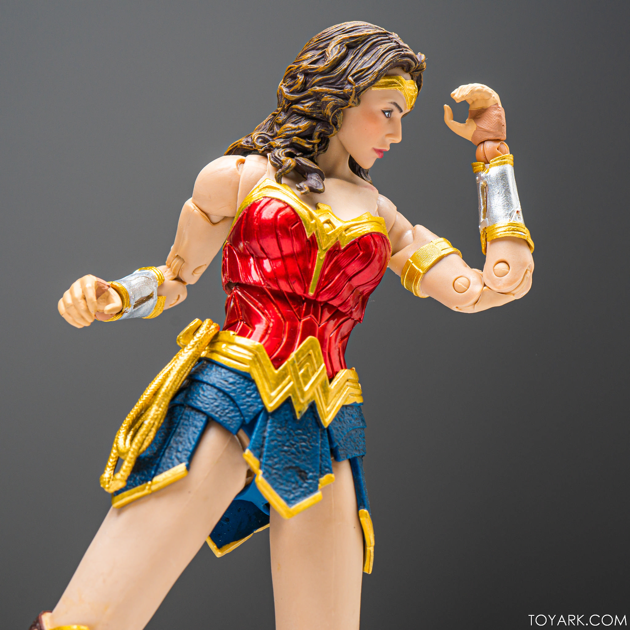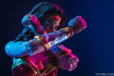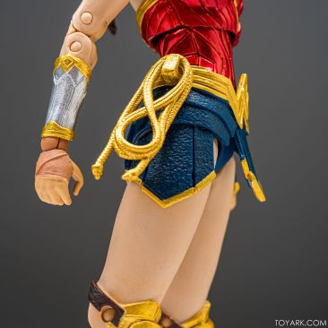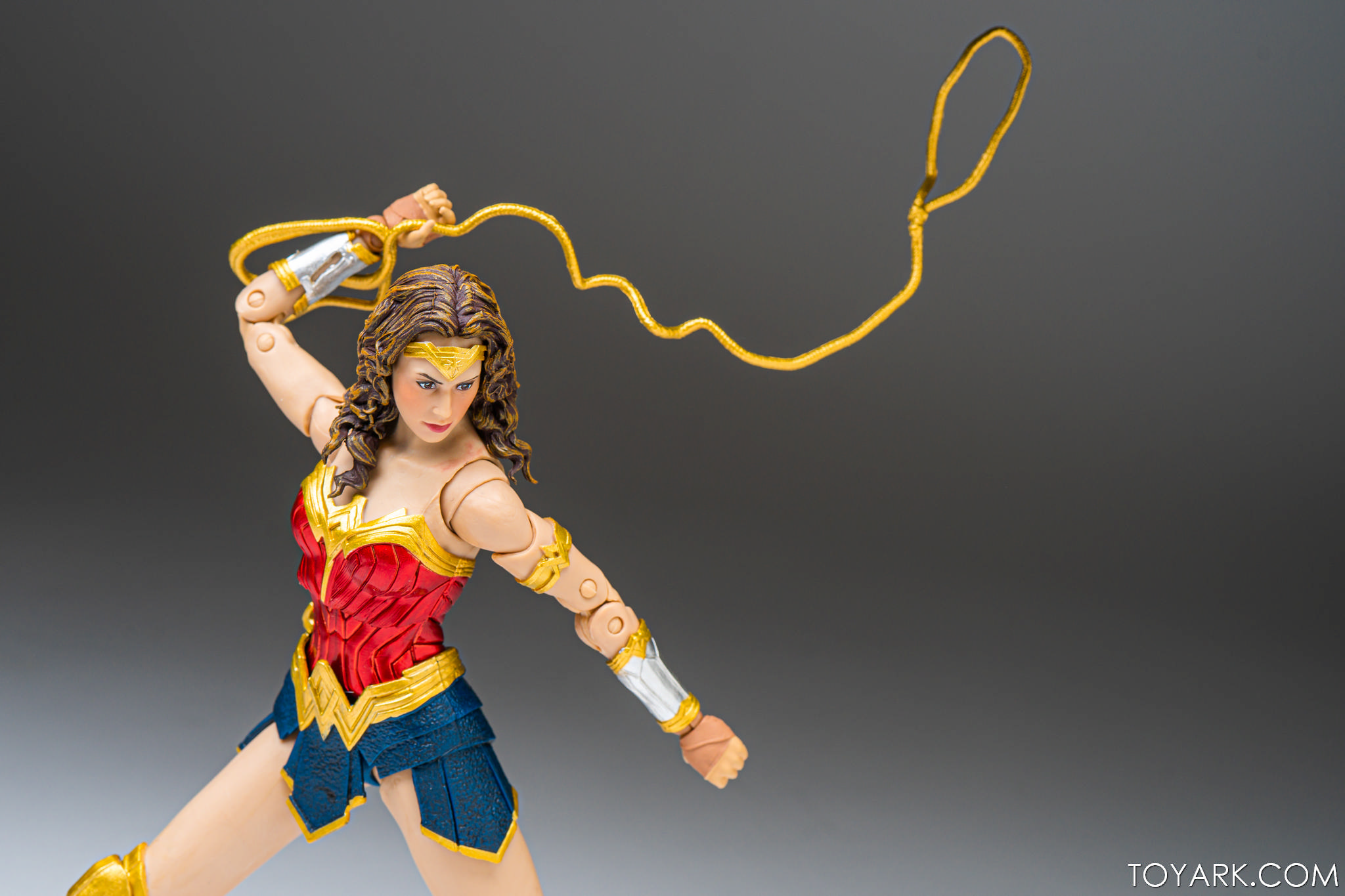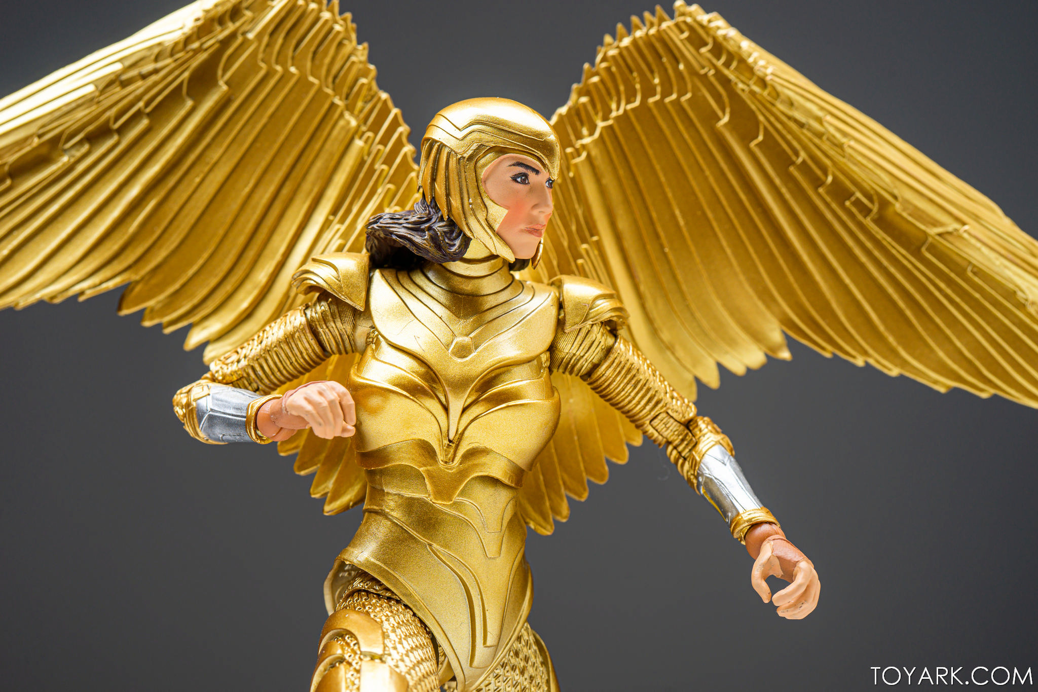 We get a standard Wonder Woman, in traditional gear, and a Golden Armor version. Both looks have been seen in the trailers. The Golden Armor one is sharp, featuring detachable wings and a flight stand. Standard Diana comes with two lassos, one extended and one wrapped up for her belt.