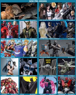 Get your Final Fantasy fix with Square Enix’s Remake Play Arts Kai figures, add onto your Marvel S.H.Figuarts collection with The Avengers movie-version of Loki, or build the ultimate Furai figure of Ultra Magnus! Plus, collectible dinosaurs from Nanmu Studio’s Jurassic Series feature realistic details on a smaller scale, as if they came right out of history. Bandai Spirits releases more model kits based on Pokemon, Gundam, Fate/, and even Digimon, while Hiya Toys announces even more horror sci-fi classics as 1:18 scale figures. Finally, Acid Rain figures and vehicles continue to inspire fantasy military minds with the addition of the Field Beholder, Maritime Flea, Field Flea, Field Cavalry figure, and more. You don’t want to miss out on these pre-orders—from niche anime like Dorohedoro to big titles like The Mandalorian, there’s something for every kind of fan.