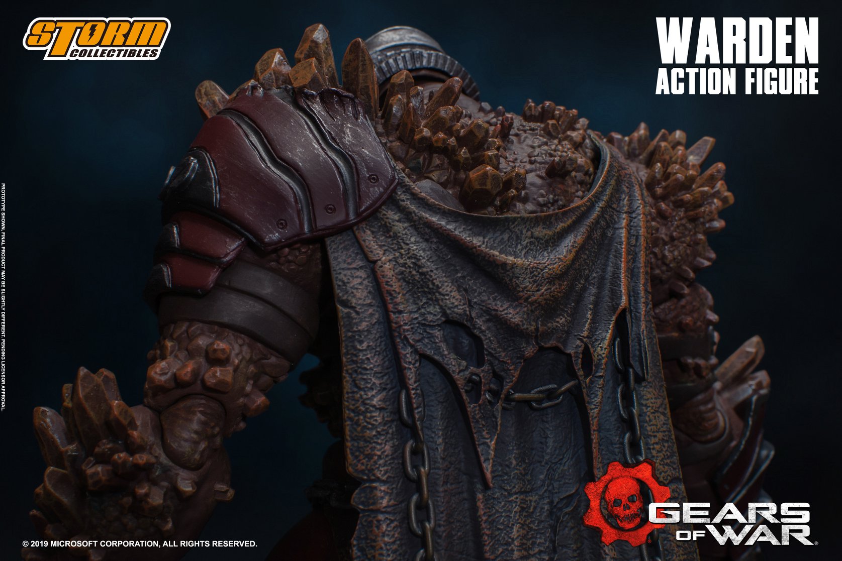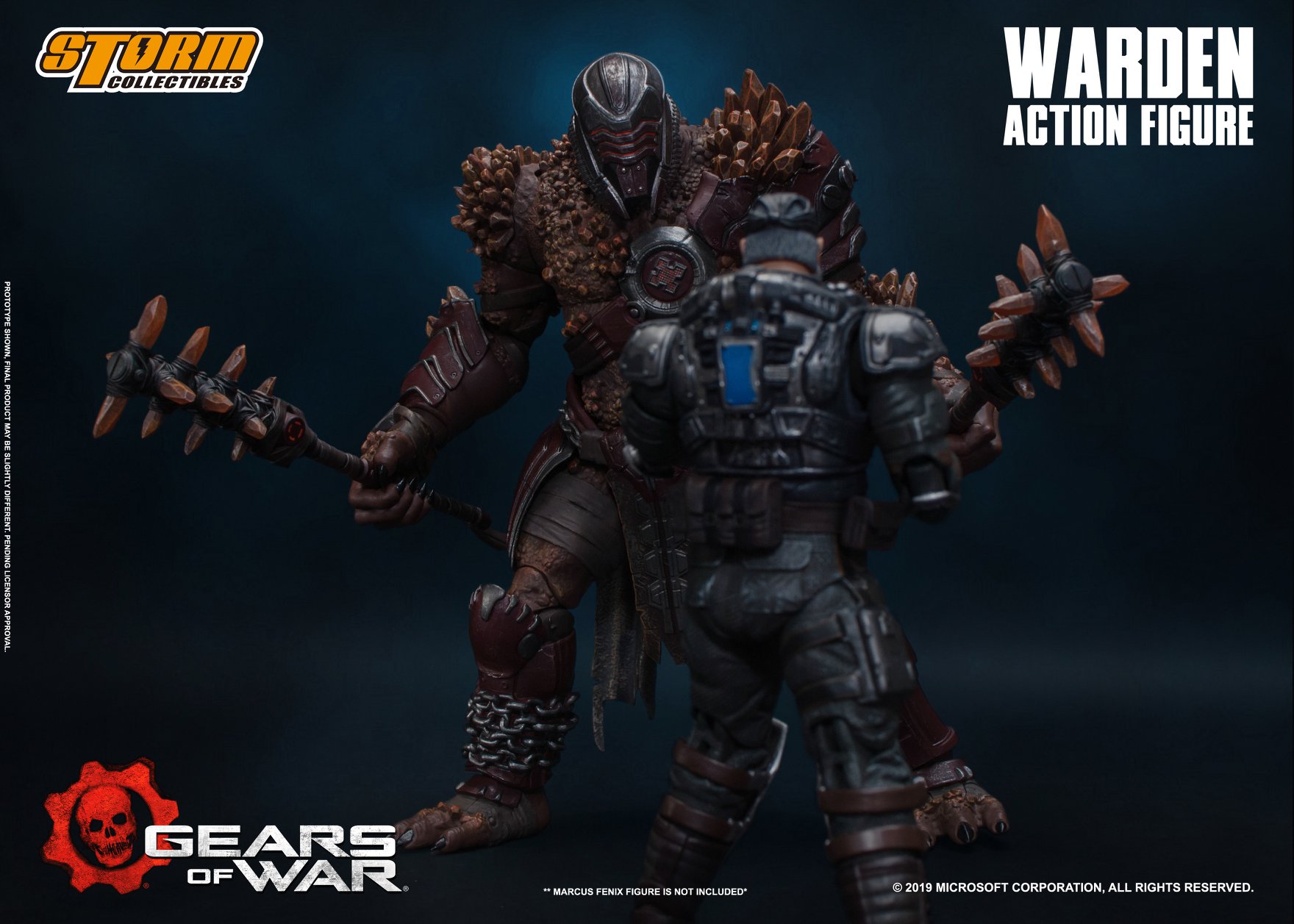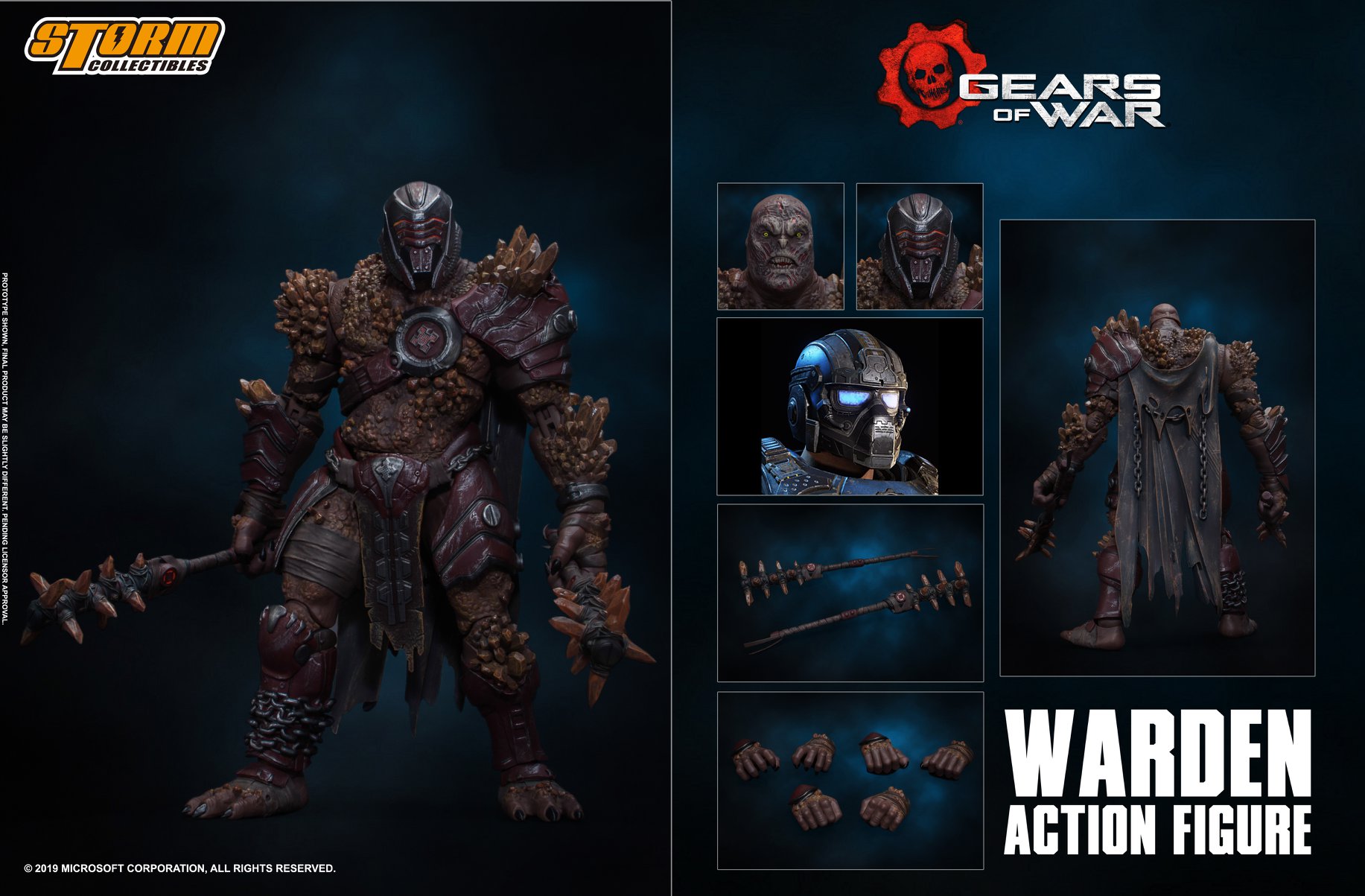 New photos for the upcoming Gears of War 5 – Warden 1/12 Scale Action Figure have been posted by Storm Collectibles. Pre-orders for the figure went live back in February, however, only a single official photo was available at the time. The new photos give us an even better look at the figure and included accessories. The Warden figure includes multiple swap out hands, a helmeted and unhelmeted head sculpt, and two braker maces. Also included is a damaged Gear Infantry Helmet that can be used by Marcus Fenix and Augustus Cole.