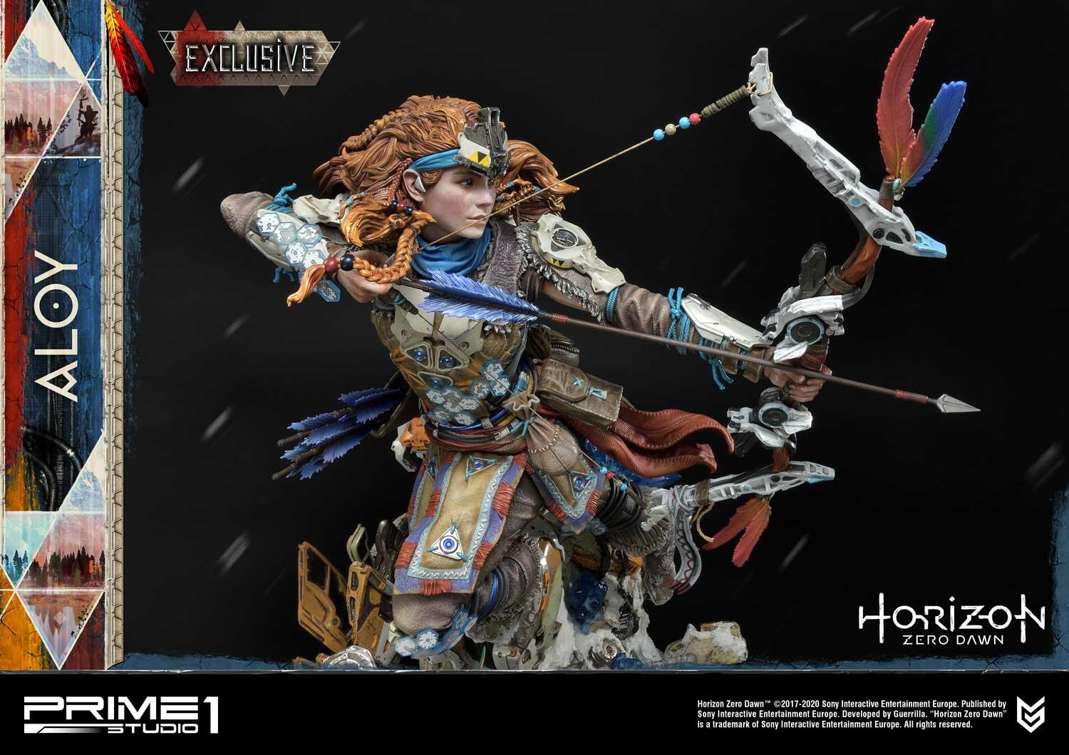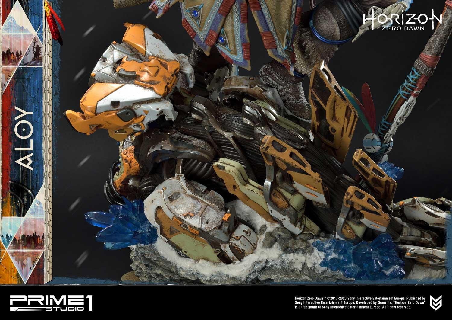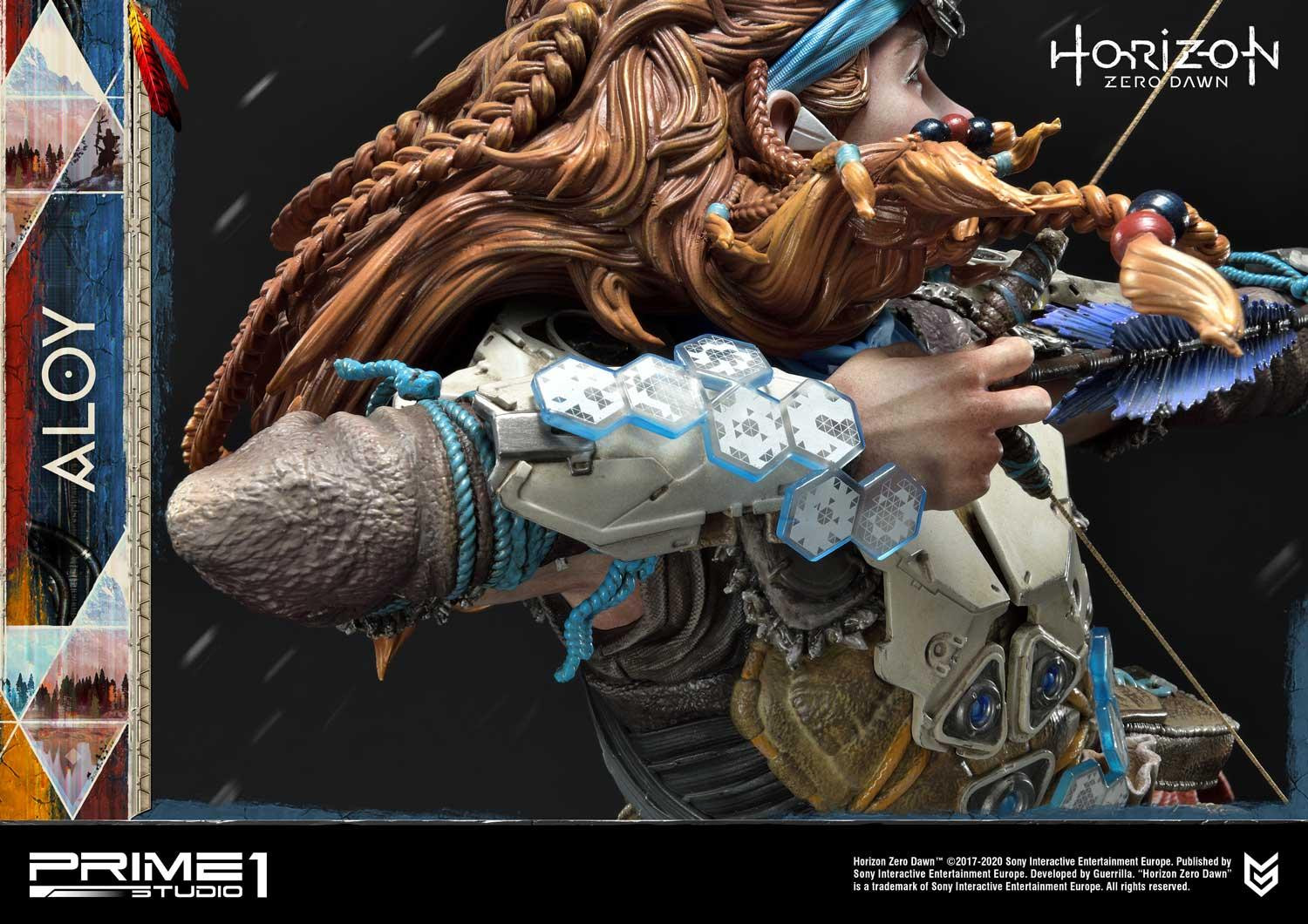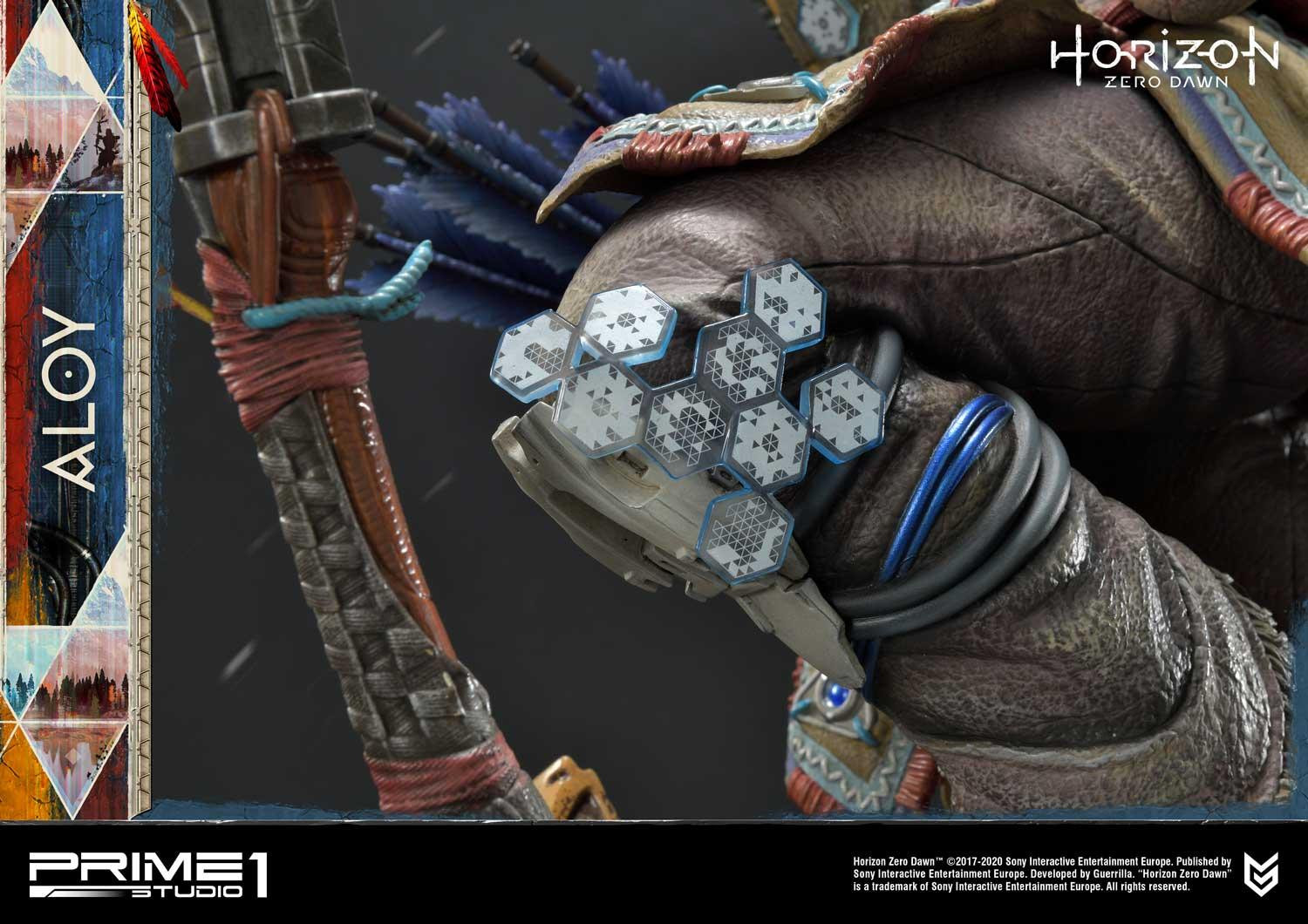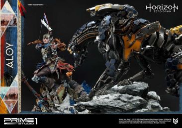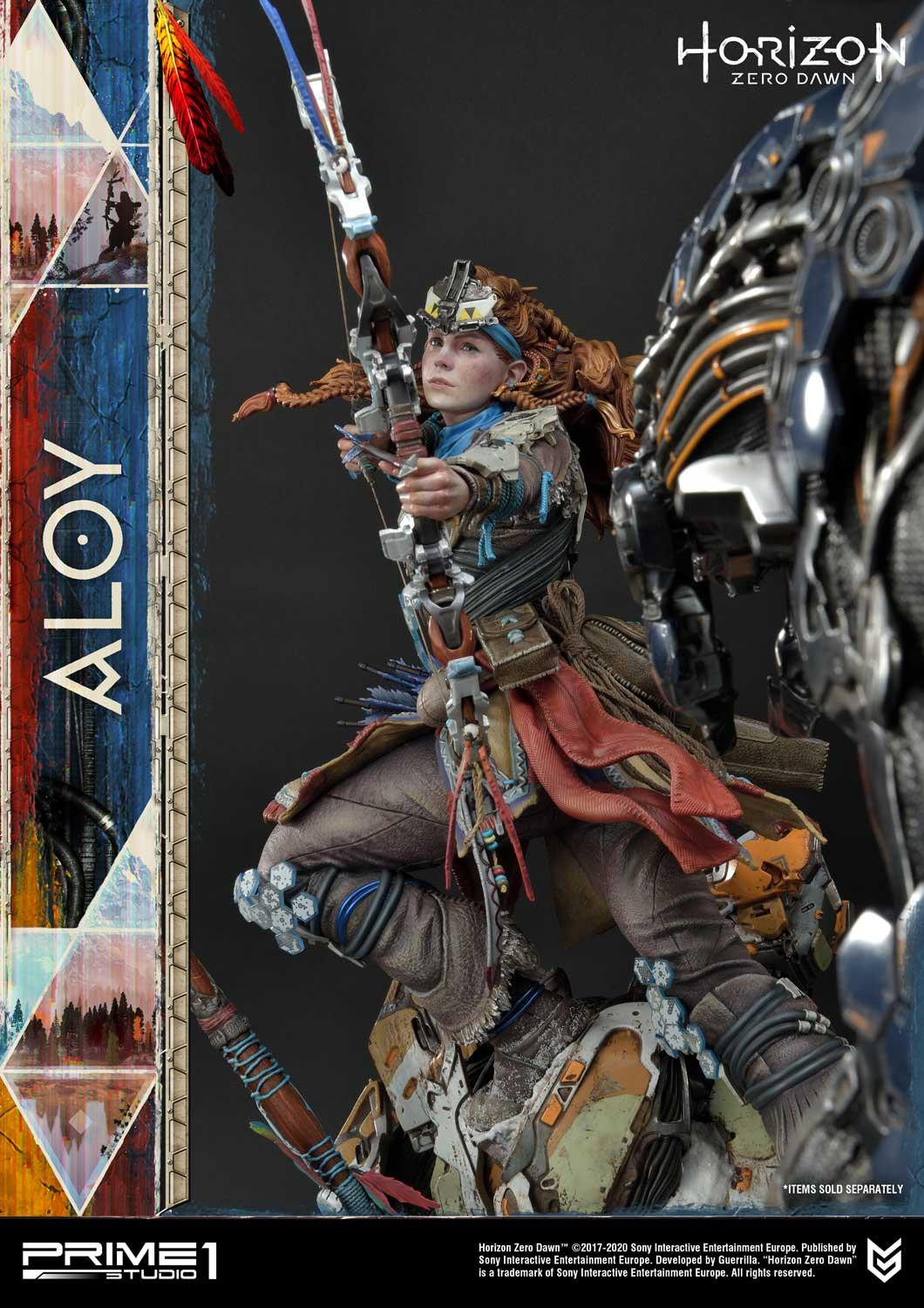 Aloy can be displayed with the UPMHZD-02: Stalker companion piece to recreate the epic combat engagement from the video game.