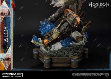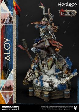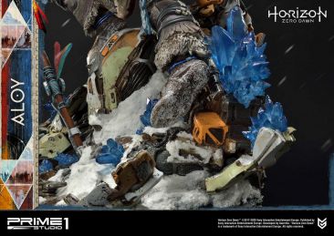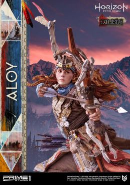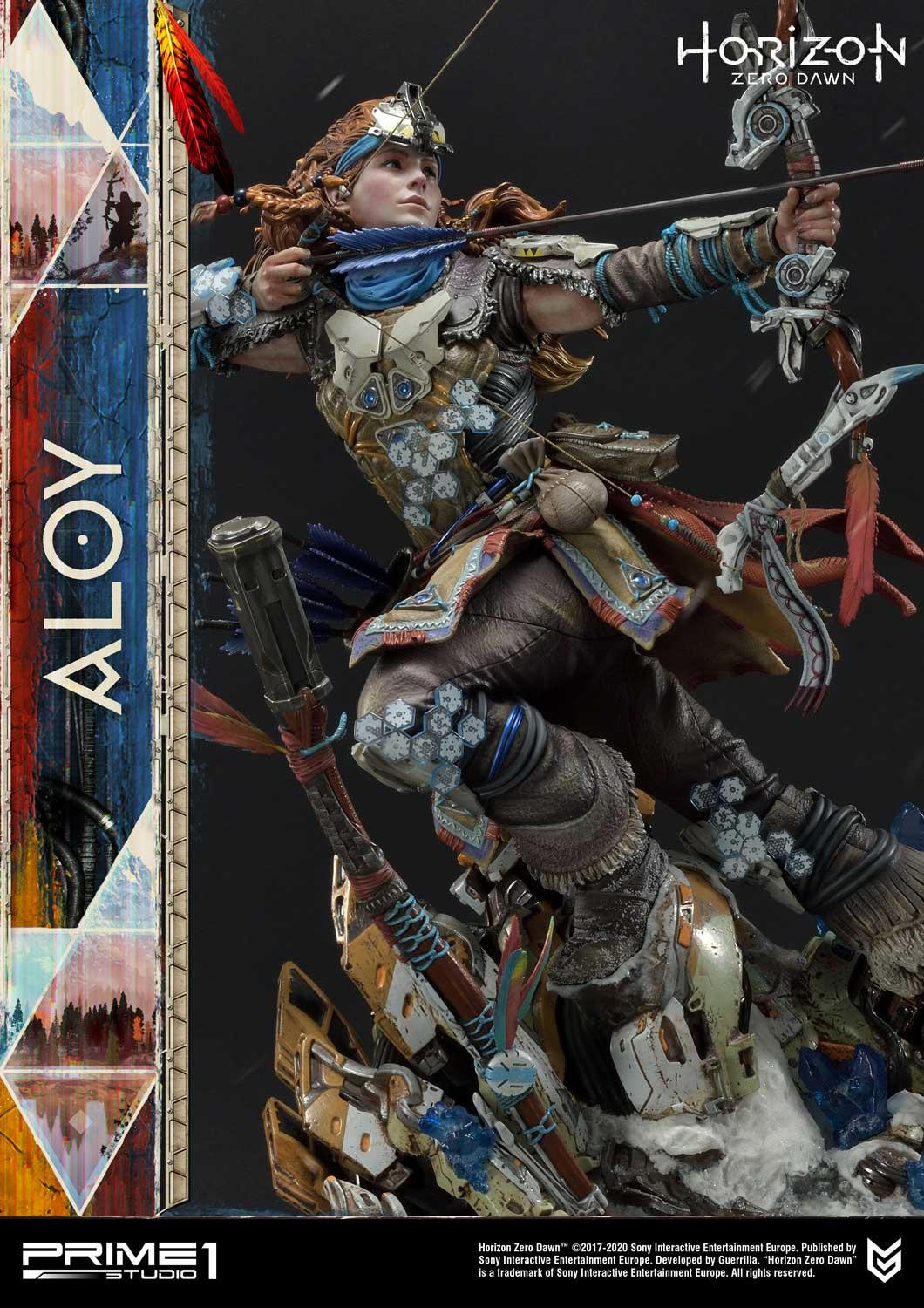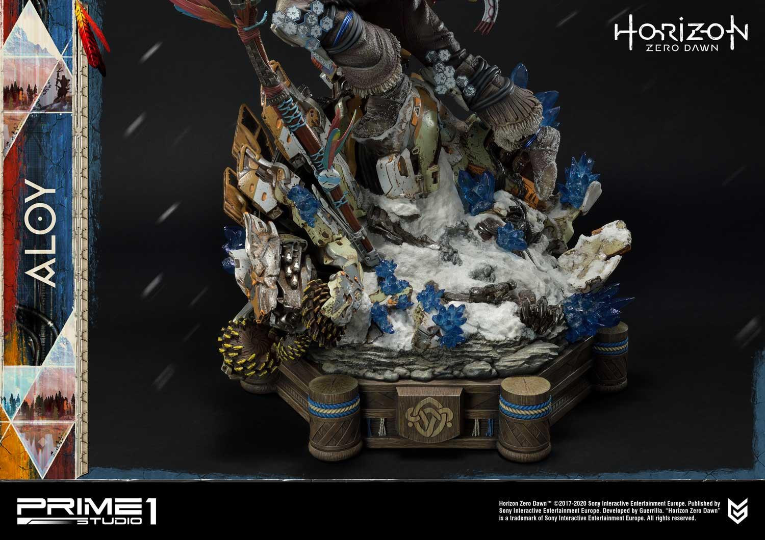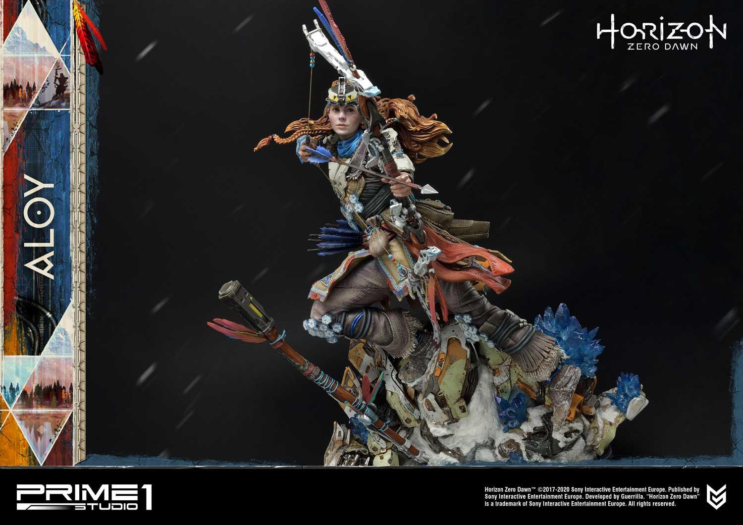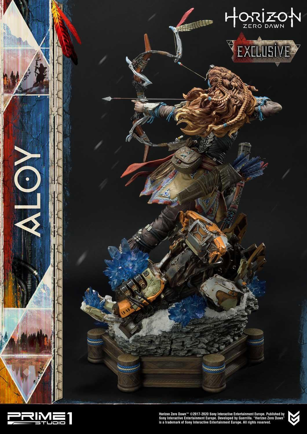 Aloy can be displayed with the UPMHZD-02: Stalker companion piece to recreate the epic combat engagement from the video game.