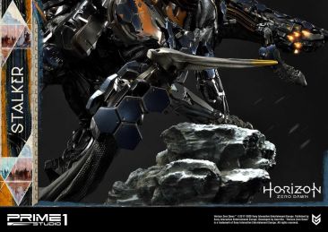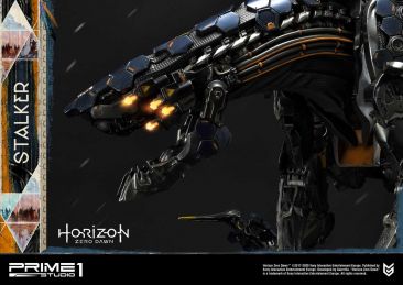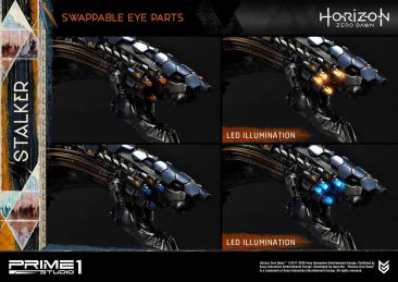 The Stalker stands poised to strike. Aloy better watch out! We present the Stalker with an adjustable jaw and swappable LED eyes. Its size, shape, and armor have been designed with extreme attention to detail in conjunction with Guerrilla, to create the most accurate video game portrayal ever.