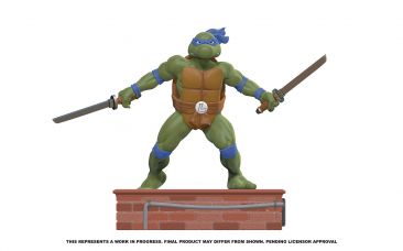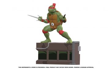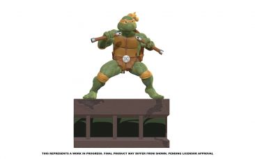 Solicitations have been released for a series of upcoming Teenage Mutant Ninja Turtles 1/8 Scale Statues. The upcoming statues are being produced by Pop Culture Shock Collectibles. Featured are the four Turtles; Leonardo, Michelangelo, Donatello, and Raphael. At 1/8 scale, these statues should stand roughly 9″ tall. Each of the turtles includes a diorama rooftop base.