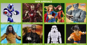 TruForce Collectibles Mega Man X figure is now here and features dieicast armor, LED functionality in the X Buster with red LED, swappable face and hand parts, customizable effects parts and over 30 points of articulation to help you recreate all of X’s iconic poses! S.H.Figuarts Iron Man Mark LXXXV, as seen in final battle of the epic Avengers: Endgame, is now in stock and includes an optional Tony Stark head, four pairs of optional hands, energy blade part, repulsor effects, nano lightning refocuser, lightning refocuser effect parts, nano shield part. Two Bishoujo statues have arrived with Supergirl and Dark Phoenix. Hot Toy’s Aquaman from the movie of the same name is ready to ship and features an accurate likeness of actor Jason Momoa. DBZ fans, be sure to grab the S.H.Figuarts Yamcha figure! Another 1/6 scale figure that arrived this week is Zorro based on The Mask of Zorro film. X-Men’s Beast from the Marvel Legends Retro Collection is here and ready to devote his time to expanding the frontiers of human knowledge.