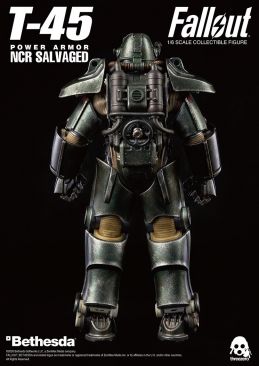 Fans can now pre-order the new Fallout – T-45 NCR Salvaged Power Armor 1/6 Scale Figure. Pre-orders are set to go live this evening (9:00 PM EST) from ThreeZero. However, other retailers have begun taking orders. The figure stands 14.5″ tall with about 35 points of articulation. It features removable armor pieces that can be mixed and matched with other Power Armor figures from ThreeZero. It includes a helmeted head with an LED light up feature, an interchangeable unmasked portrait, and a minigun accessory. It’s priced at $400, though is available as low as $375. Pre-order at the links below, and see photos after the jump.