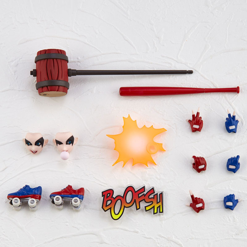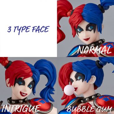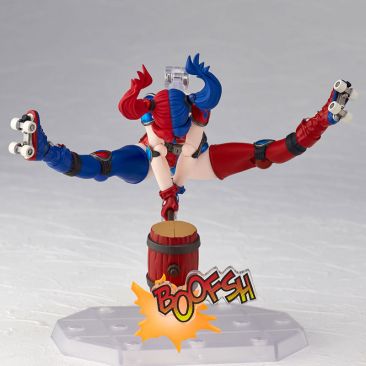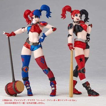 The updated Amazing Yamaguchi Revoltech Harley Quinn Figure that we reported on last month is getting an exclusive version. Retailer Amiami is selling an exclusive color version of the Harley Quinn Revoltech Figure. This version has a newly painted head sculpt, with blue and red hair, and darker eye make up. The figure stands just under 6″ tall, with about 40 points of articulation. Harley will include three interchangeable faces, multiple interchangeable hands, swap out feet with shoes or roller skates, a baseball bat, a mallet, and a comic effects piece.