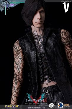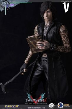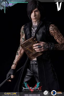 Asmus Toys has revealed their latest figure from Devil May Cry 5. Previously, they had announced figures based on Dante and Nero, with a DMC5 version of Vergil coming soon. The newest announcement is for a V 1/6 Scale Figure. In the game, V is a human with demonic ties, who is later revealed to be someone of great importance to Dante and Nero. The figure stands a little over 12″ tall, with about 32 points of articulation. V features seamless joints, interchangeable hands, a cane, a Book of V, and a figure stand. Ordering directly from Asmus Toys gets you an additional portrait with white hair.