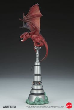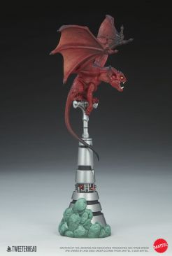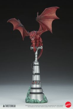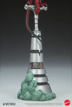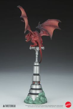 The Hordak’s Minion Maquette measures about 13.5” tall when fully assembled – figure, and base. This polyresin statue comes with it’s iconic striking crimson look perched atop the horrific Fright-Zone themed base matching with Hordak’s.