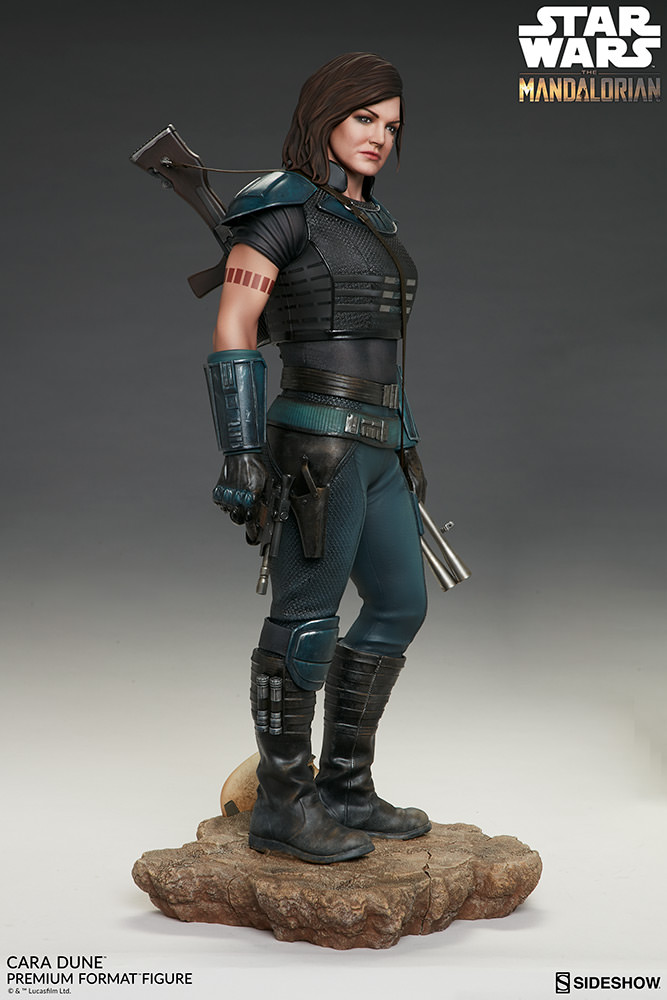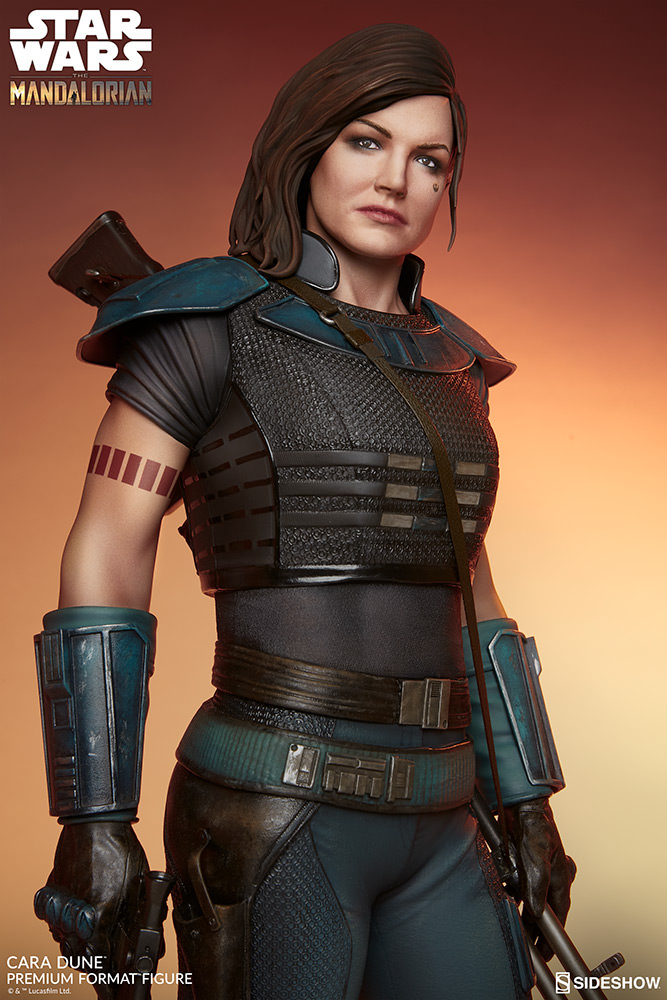 Sideshow presents the Cara Dune™ Premium Format™ Figure, a limited-edition quarter scale figure based on the acclaimed live-action Star Wars™ series The Mandalorian™ streaming on Disney+. A strong and fearless veteran of the Galactic Civil War, Cara Dune has captured the imagination of Star Wars fans both new and old. This seasoned warrior proves to be a powerful ally for Din Djarin™ the Mandalorian. She puts her military past behind her and refashions herself as a mercenary, aiding the bounty hunter as he seeks to protect the alien asset known only as the Child.
