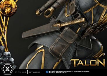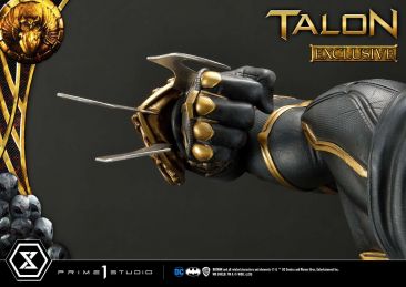 Charging forward is the assassin Talon. Swords drawn and ready to take out his next victim in the blink of an eye! Talon has been sculpted and painted in accordance with his classic comic book appearance. The beautiful contrast of the gold, complete with weapons on his suit, make for an eye-catching piece that will set your collection apart from the rest!