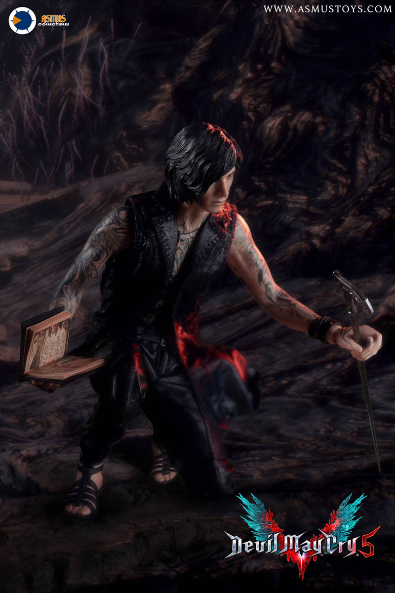 Asmus Toys has stopped by the forums to share news on their soon to be released Devil May Cry 5 – V 1/6 Scale Figure. They have received the final product, and have shared new photos of the production version. In the game, V is a human with demonic ties, who is later revealed to be someone of great importance to both Dante and Nero. The figure stands a little over 12″ tall, with about 32 points of articulation. V features seamless joints, interchangeable hands, a cane, a Book of V, and a figure stand. Ordering directly from the Asmus Toys Store gets you an additional portrait with white hair.