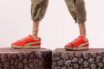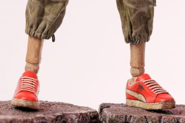 The clothing is excellently done, I always admired the bonkers vibe and attention to detail going on with 3A stuff before, and that continues here. He’s a little more simple than the upcoming NOMAD or HINKON in terms of gear, but it’s not vanilla. Printing on the tee, great baggy shorts, a nice set of weathered kicks. The head and gloves feature great weathering as well, along with some digi print.