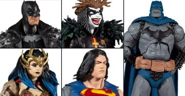 The next assortment of DC Multiverse 7″ Scale figures from McFarlane Toys features characters from the DC Comics Dark Nights: Death Metal story arc. The wave includes Wonder Woman, Batman with Guitar), Superman, and Robin King. Each figure includes a Build-A-Figure part for the Darkfather figure. Amazon Canada has posted pre-order listings. Click the links below for those.