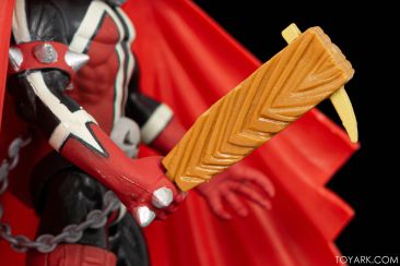 The cape. That awesome cape. That sonofab**** cape. :). It’s big, it’s plastic, it’s firm. It does what it says it’ll do, it opens and closes. It homages the original. It looks great in vanilla poses. It also is a bit taller than the figure. So it pushes out behind him while he’s standing straight up. Not horrible, but a thing. Then, if you want to pose him in any way that has his legs bent, you lose height, and it becomes a bigger issue. It is also not easily removeable. They seem glued in place to me. I didn’t want to break it trying to find out. That being said, half of one side on one of mine started disconnecting. But not enough that I felt comfortable going all the way. The heavy posing and resting with legs bent I guess put upward pressure on one side and it came out of it’s track. And yes, there is a track cut into the figure where the cape sits in. What I would have preferred – do this, make it removeable, and even offer multiple other capes later. Give me a cape pack that works with all Spawn figures down the road, using a unified technology on all figures. Some will work better than others, but we can make the choice. Or, choose to remove it and put a custom non-plastic cape on instead. As a vanilla pose centerpiece it’s great, but functionally for photos, dynamic poses on shelf, or just “playing” with it every once and a while, the cape is limiting.