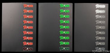 The Kickstarter had a lot of options, upgrades, “stretch goals” and variants as it progressed, but the end result were 3 distinct figures with a set of weapons each (see inside for the breakdown).  One extra weapon was available only to those that bought all 3.  After that the variations are comic cover and autograph type.  The three figures were Classic Spawn, Modern Spawn, and Artist Proof Spawn (all grey).   I actually bought 5 – a three pack and one each of the Classic and Modern.  So we have them all here and are seen in depth after the break.