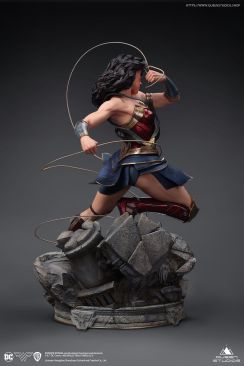 As we celebrate 80 years of this incredible character, the Queen Studios team decided that it would be fitting to bring Wonder Woman to life in a quarter scale statue inspired by both DC Comics and the DCEU. For the 1/4 Wonder Woman statue, collectors can enjoy a dynamic statue with two head sculpts. The first a hyper real representation of Wonder Woman actress Gal Gadot. The Second with a head sculpt straight out of the comics.