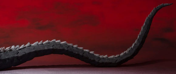 While no details are available at this time, Tamashii Nations has dropped a couple of teaser images for their next S.H. MonsterArts release. The silhouette, and close up of the tail, seem to point to them creating a figure based on Godzilla’s new design in the Netflix anime Godzilla: Singular Point. It looks like the figure will be full unveiled net week during the “figu @ HOME” online event from Tamashii Nations. Check out the teaser images after the jump.