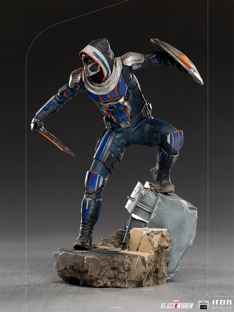 In the Black Widow movie, after the events that occurred in Captain America: Civil War (2016), the avenger Natasha Romanoff finds herself on a forced flight and must face a dangerous conspiracy closely tied to her past. She will meet allies like The Red Guardian and Yelena Belova, other figures that will compose this series of statues from Iron Studios, and face the dangerous Taskmaster.