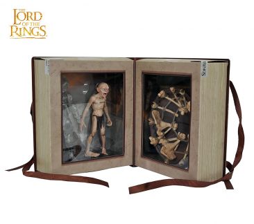 What has it gots in its pocketses? This exclusive two-pack of Lord of the Rings action figures lets the cat out of the bag, showing Frodo in his completely invisible mode, wearing the one Ring of Sauron. Standing right next to him is Gollum, who looks upset about someone stealing his “precious.” The pair comes packed in a replica of an open book with ribbon ties and window panes for display! Perfect for hiding the Ring from sneaky hobbitses!