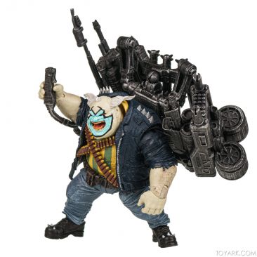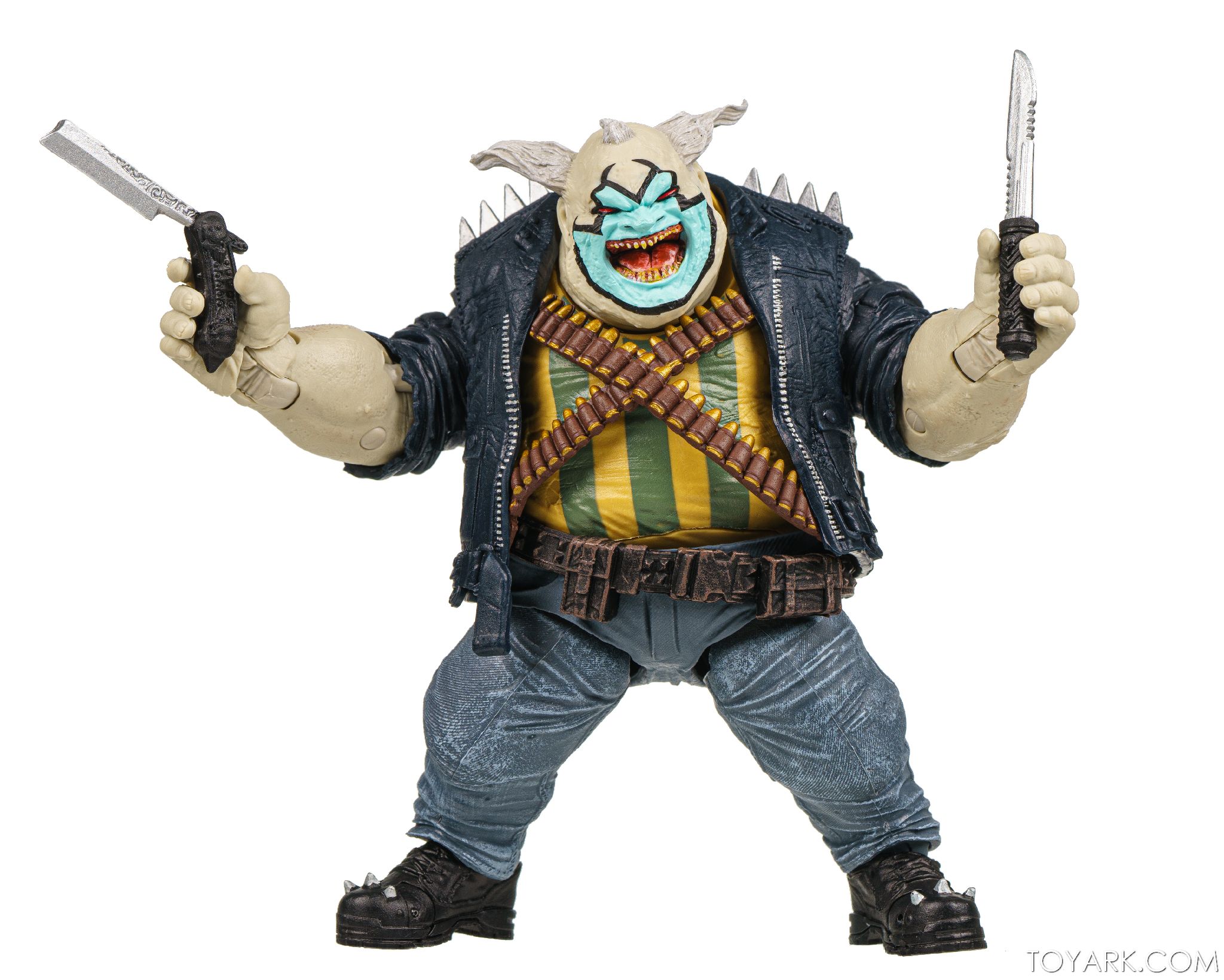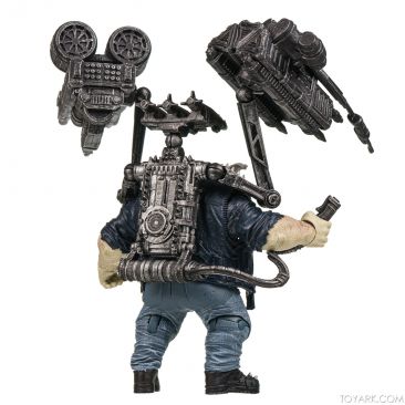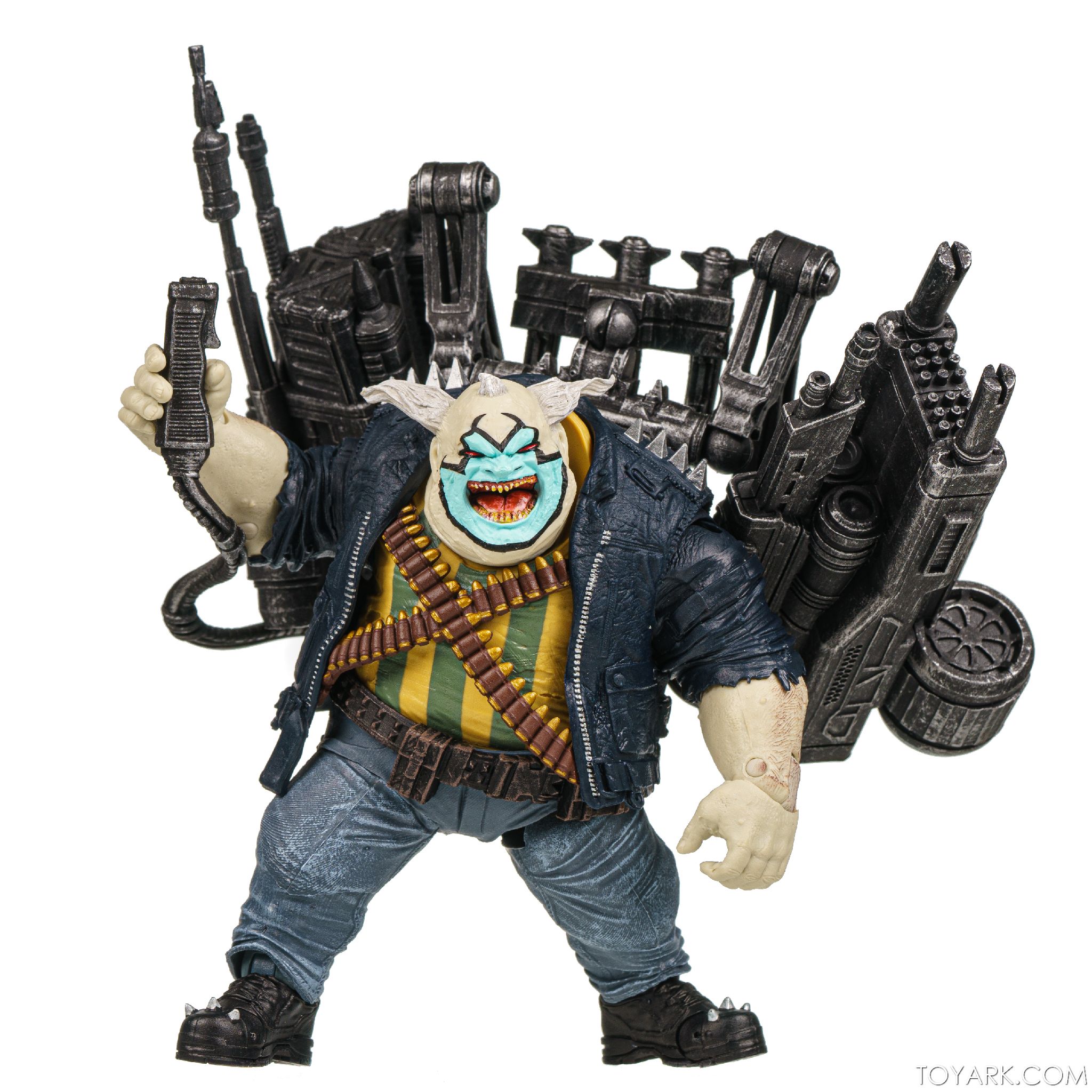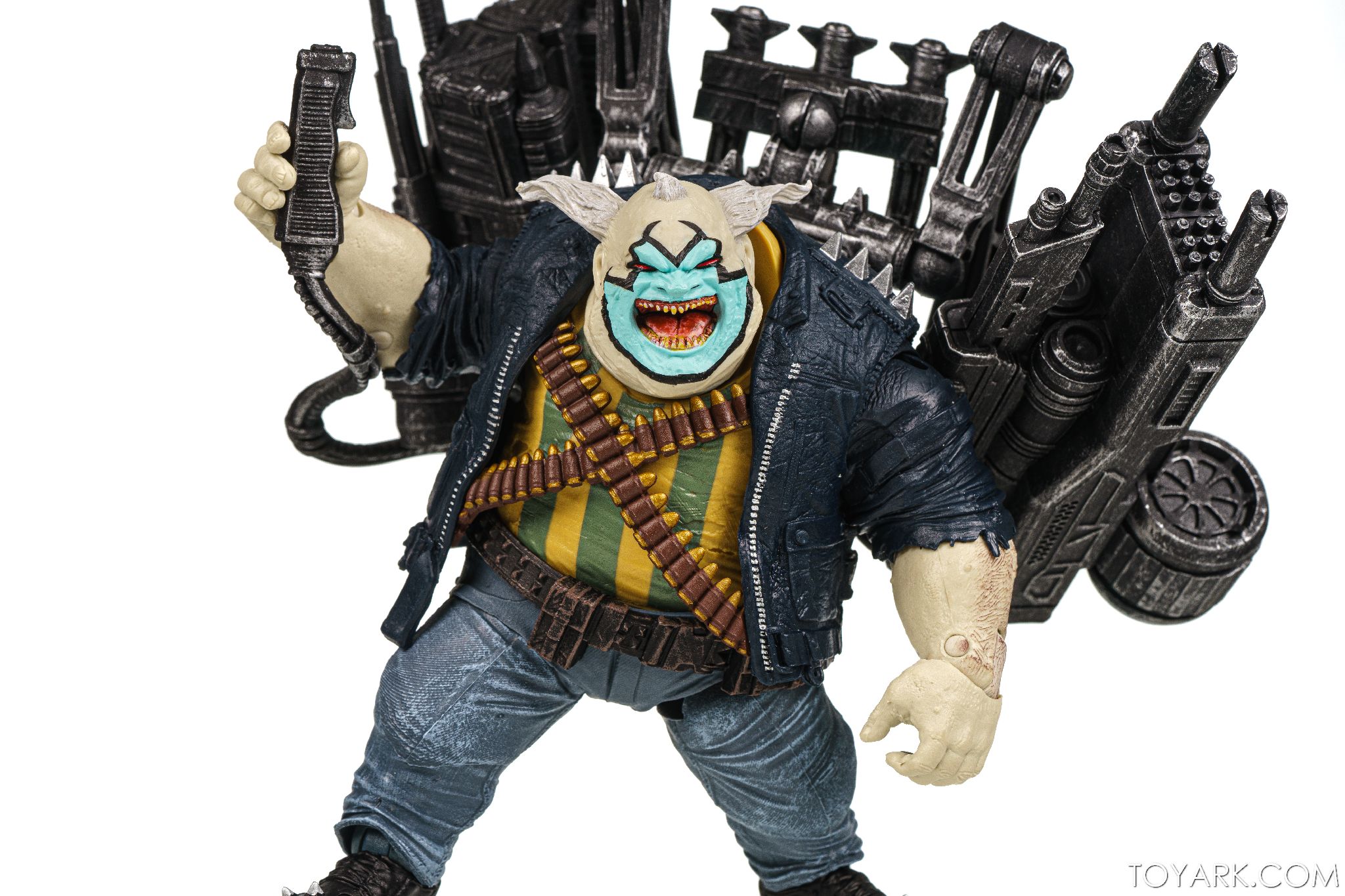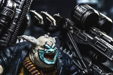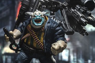 Deluxe Clown – This is the one folks were iffy about, since straight on he’s smaller than the rest. But again, I think the scale upgrade and price is justified. He’s short, but stocky all around. Again dense plastic. Articulation is there at all key points, good head movement even though he has no neck. He also comes packed with a MASSIVE set of guns that attach to his back, calling back to the classic toy. They also have articulation at multiple points. The gun pack weighs as much as the figure, it’s basically a two pack. Getting him to stand with this thing is difficult, but the included stands help a lot. If you have extra, use two. All in all it’s an impressive piece and works well with Violator and Kickstarter Spawn.