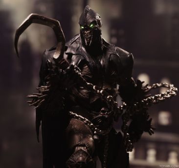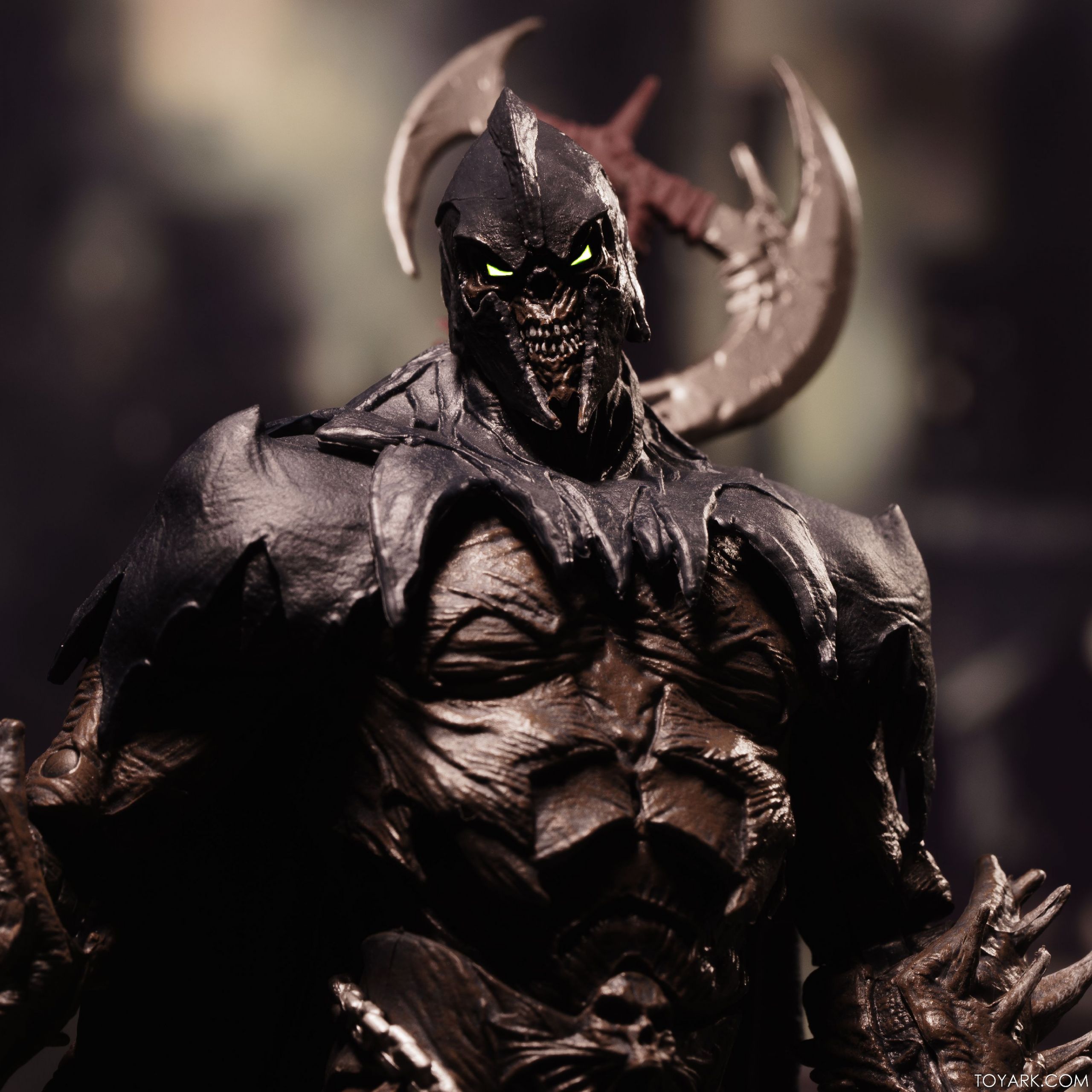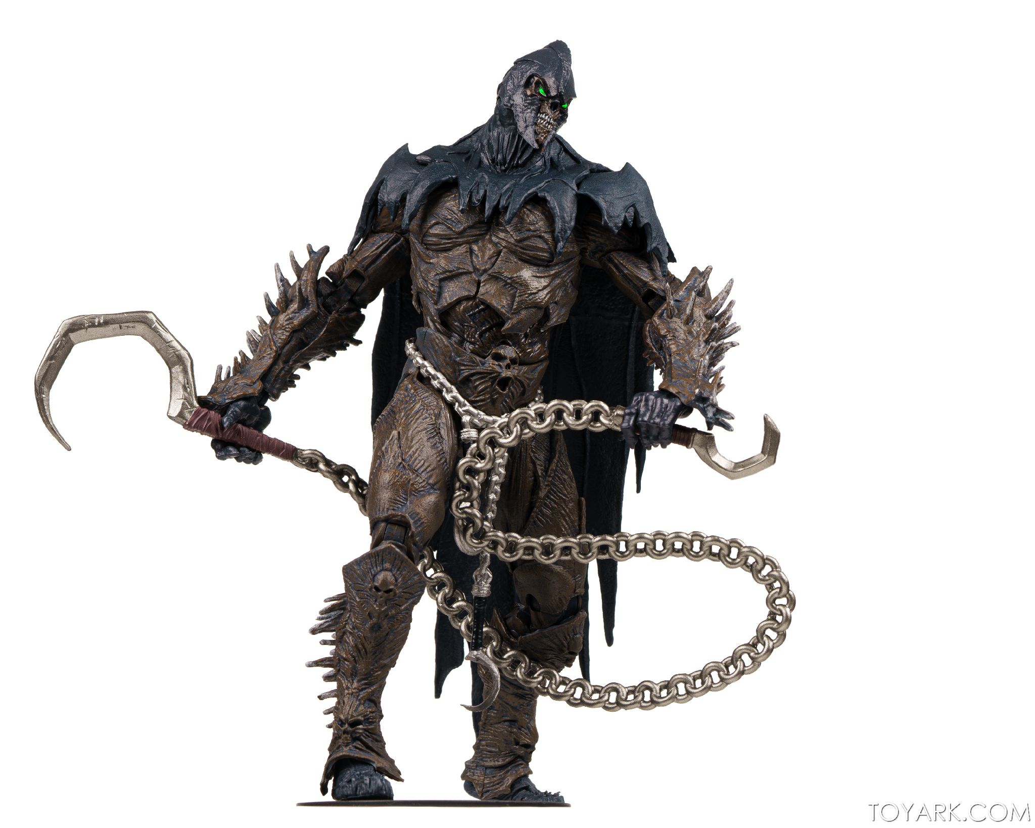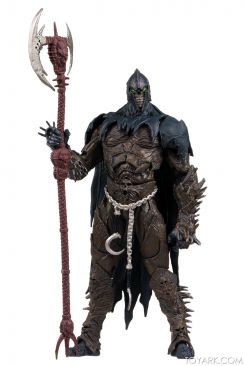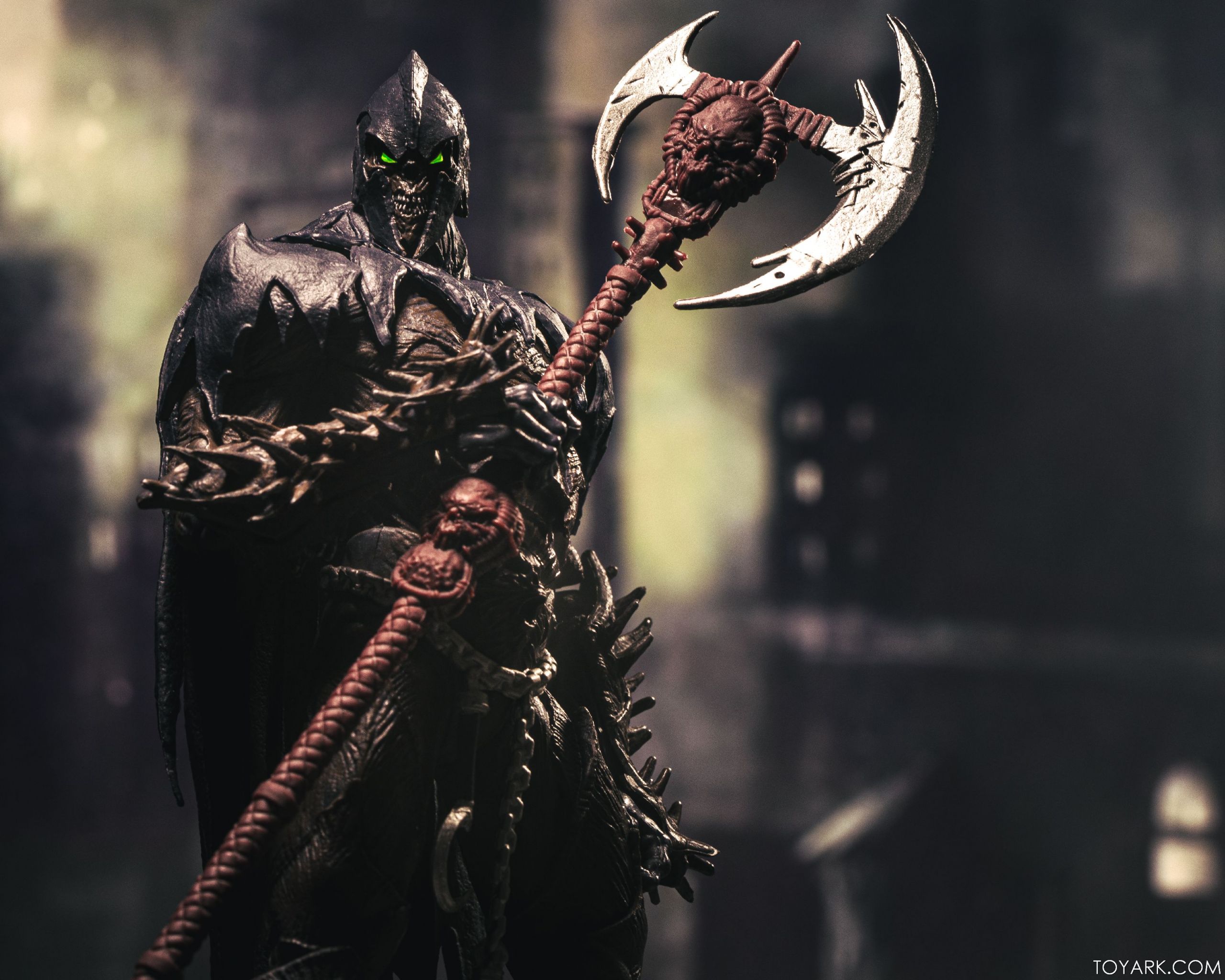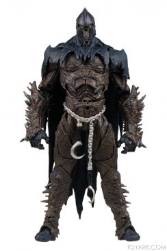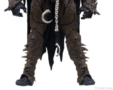 Raven Spawn – My favorite of the 7 Inch “basic” figs. Monotone and creepy looking, chains and a bladed staff. Perfect WUT stance on a shelf. Again, articulation is on point, all modern notes touched. The chain accessory is stiff, so you can’t do too many different two handed poses, and single hand poses have a chain flying outward some way.