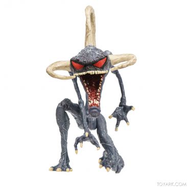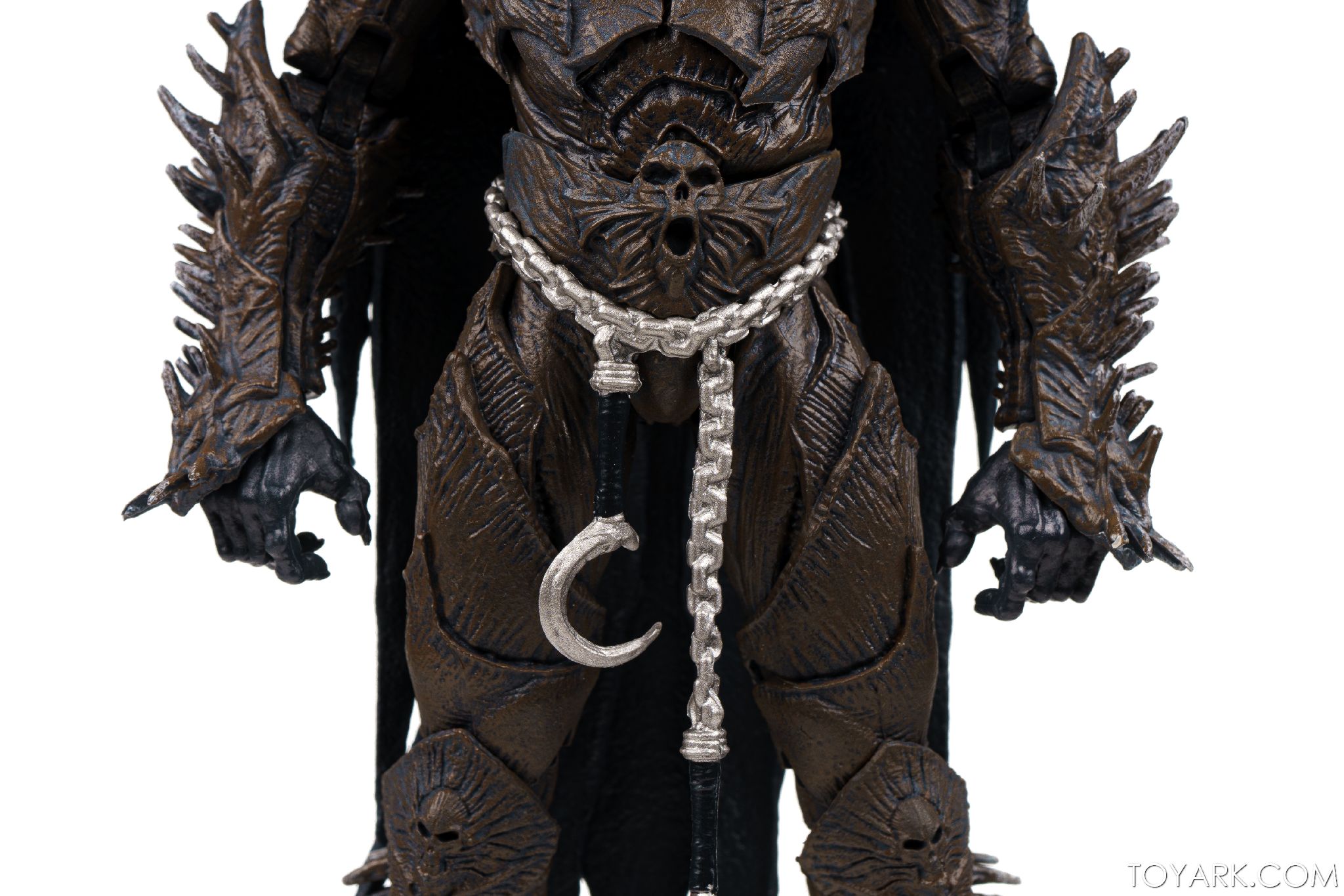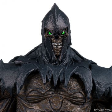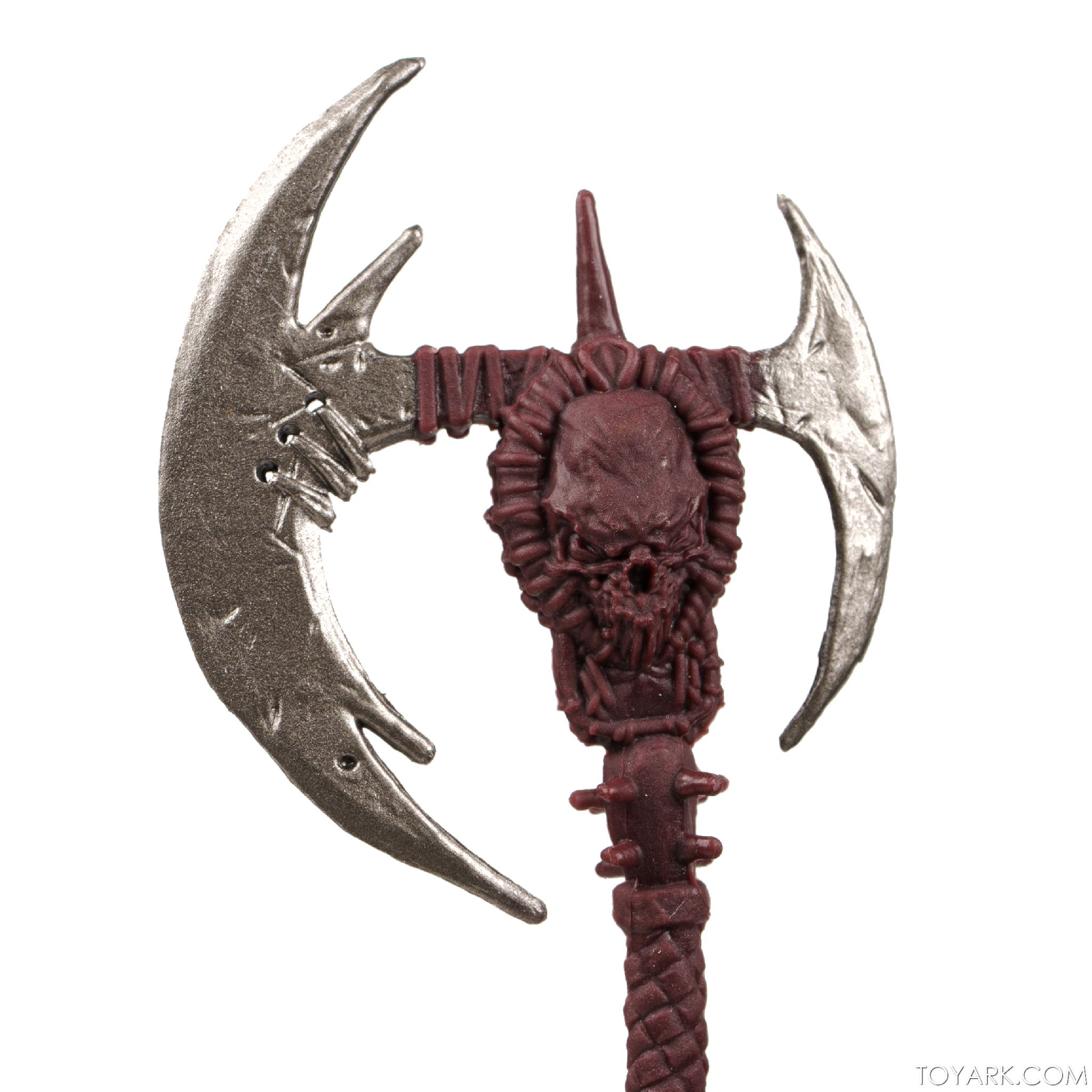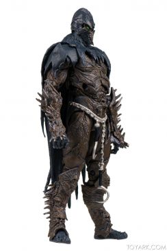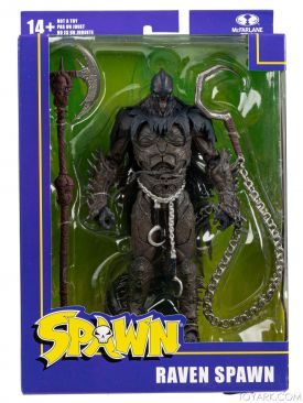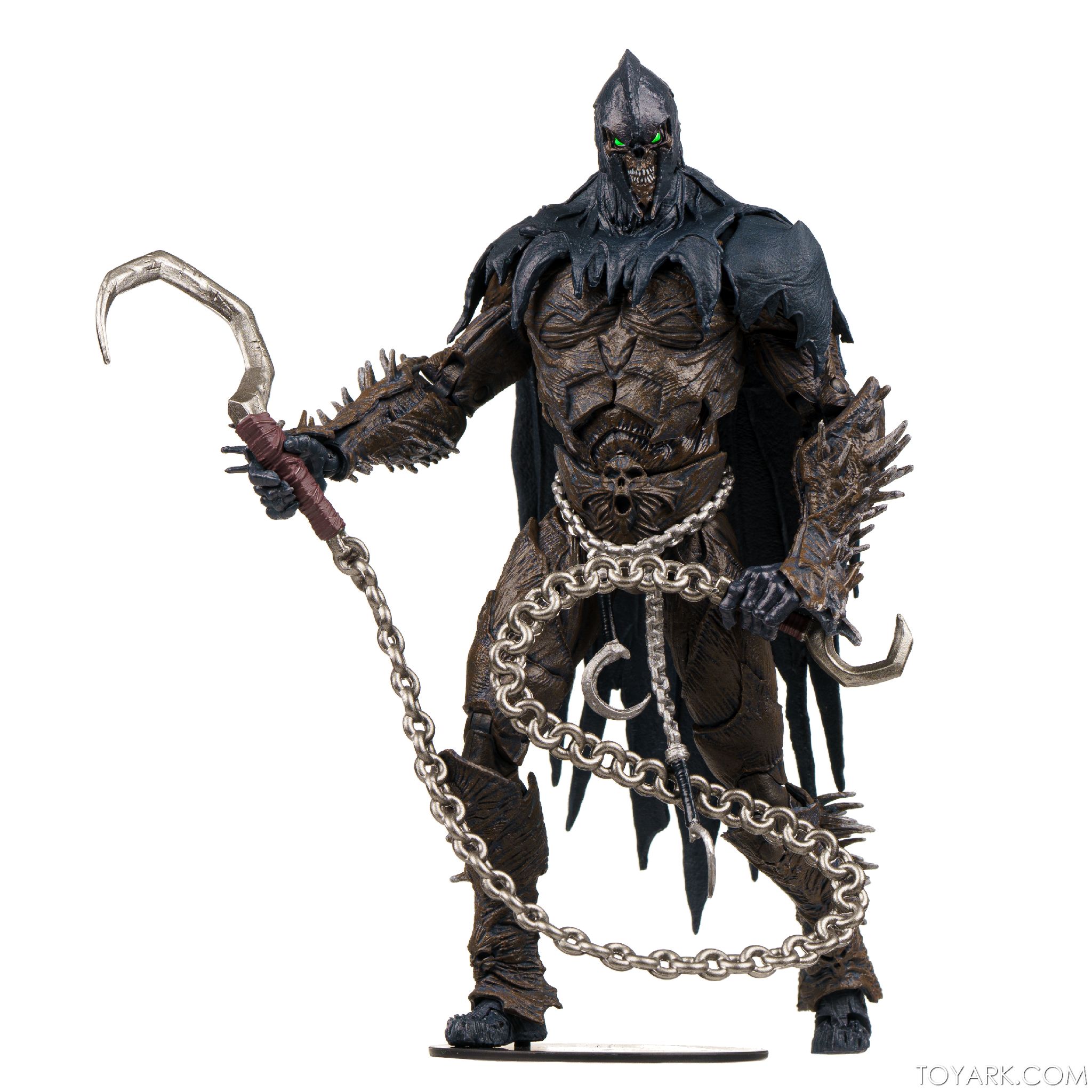 Raven Spawn – My favorite of the 7 Inch “basic” figs. Monotone and creepy looking, chains and a bladed staff. Perfect WUT stance on a shelf. Again, articulation is on point, all modern notes touched. The chain accessory is stiff, so you can’t do too many different two handed poses, and single hand poses have a chain flying outward some way.