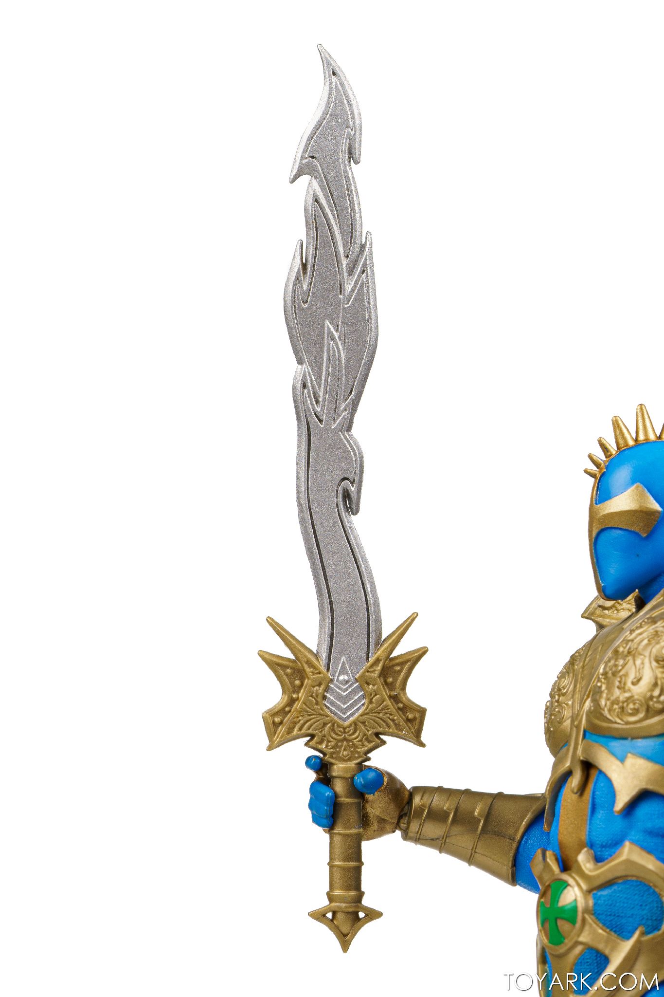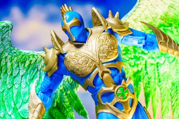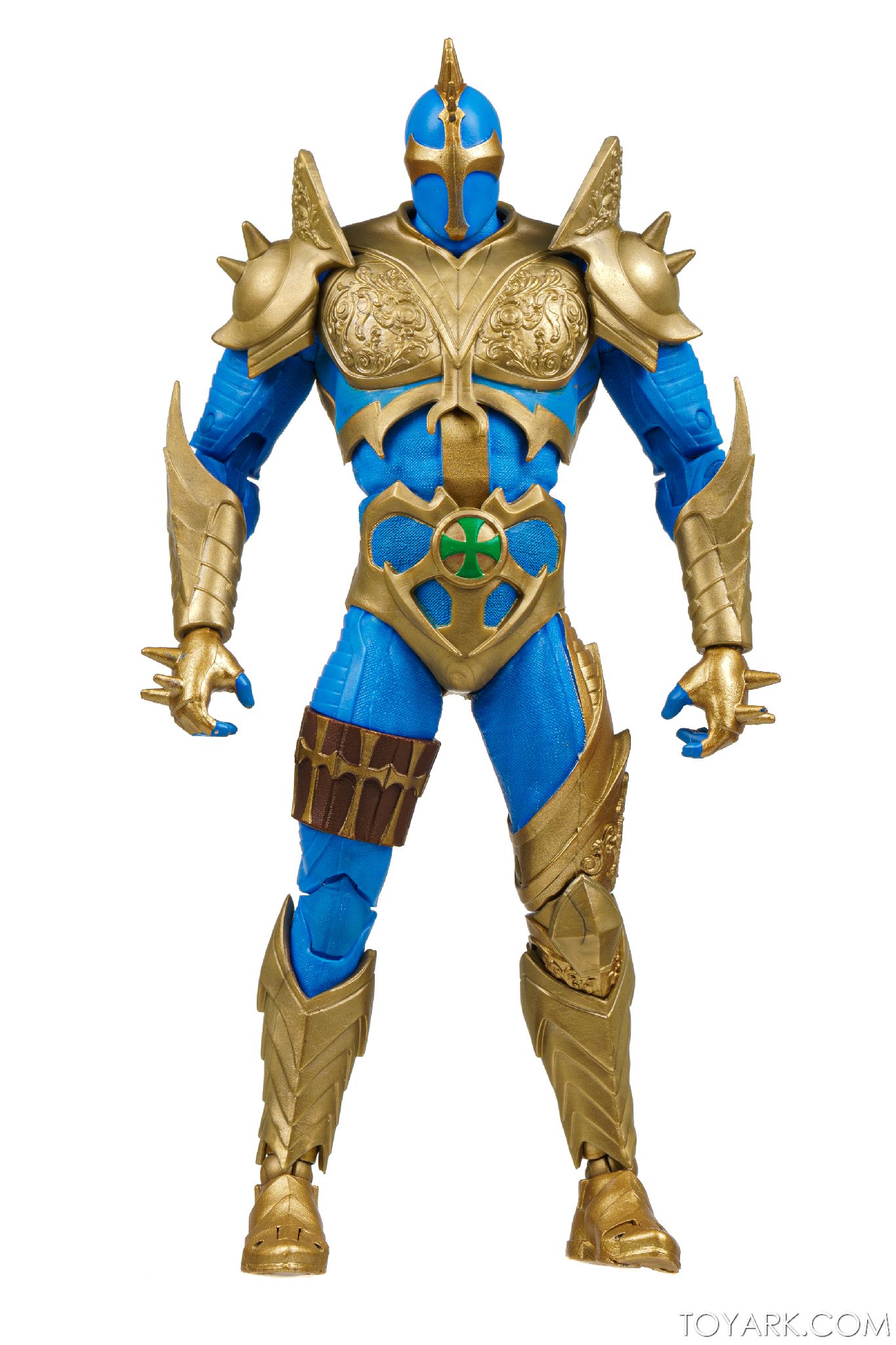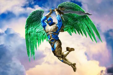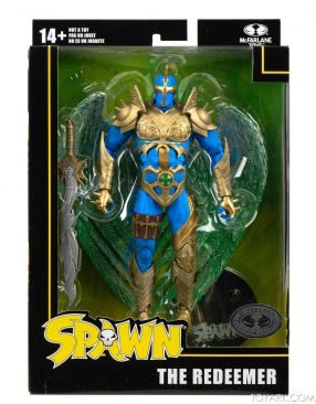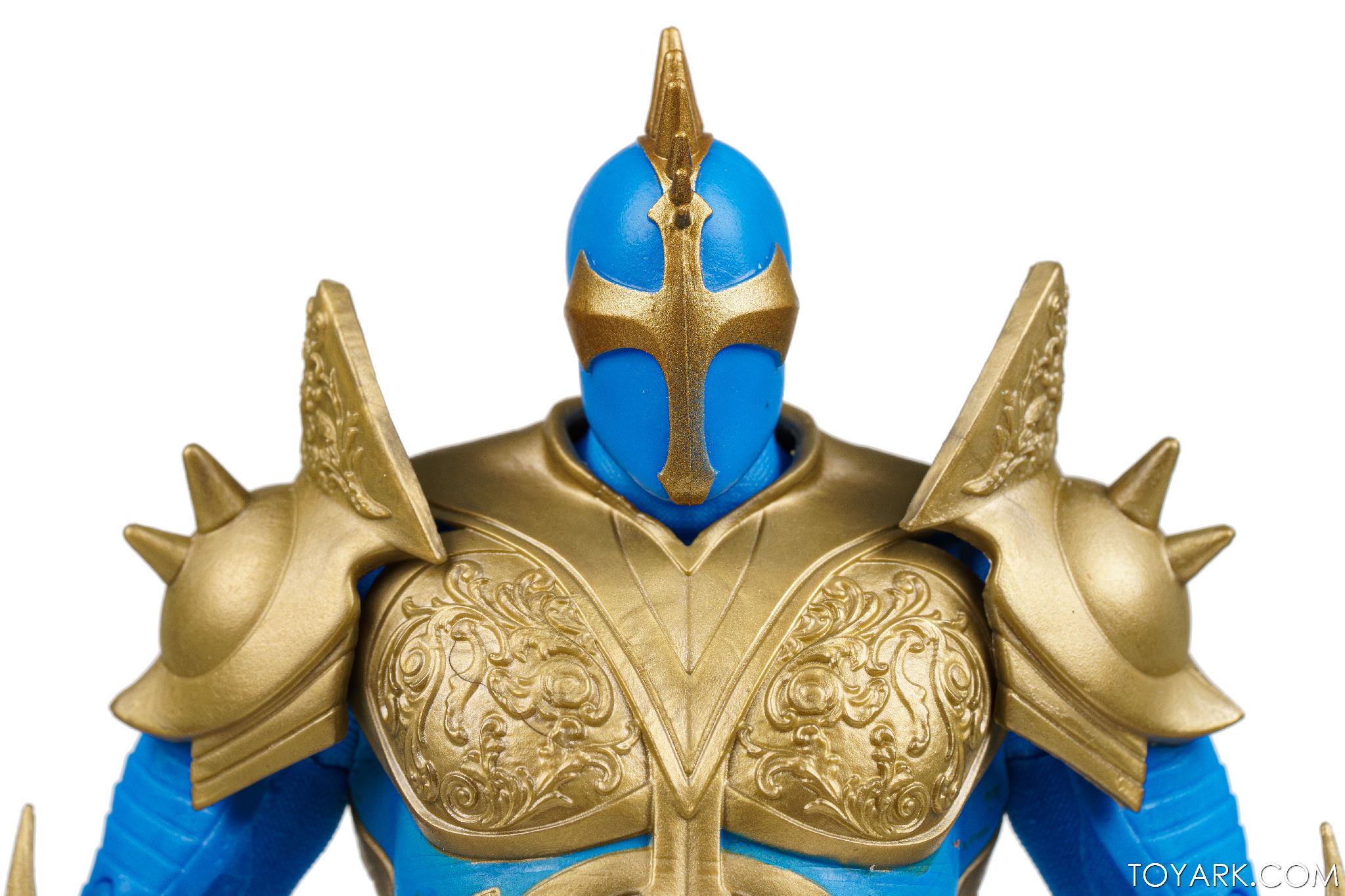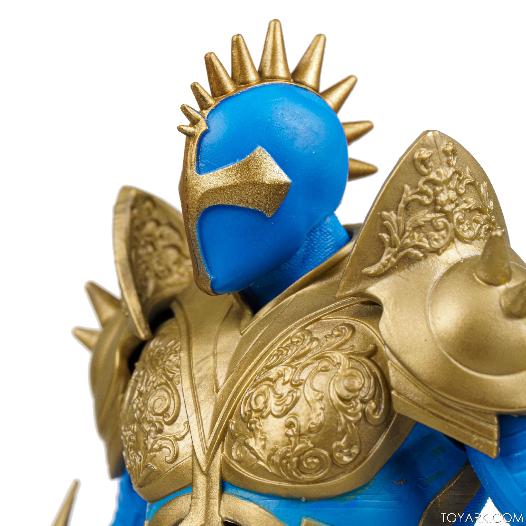 Redeemer – Modern take. The one featured here is actually a chase variant, branded with a Platinum Edition sticker. This variant features green wings and a different sword. The regular one has white wings and another sword. The green wings are a call back to his old look, featured on some art and older toys. Current look has the white wings in the book. Great sculpt, there is nice texture on the blue parts. Gold has a metallic sheen. My copy the joints were a little loose and the wings are heavy, so took a bit to get him to stand up at times. Looks great when set properly tho.
