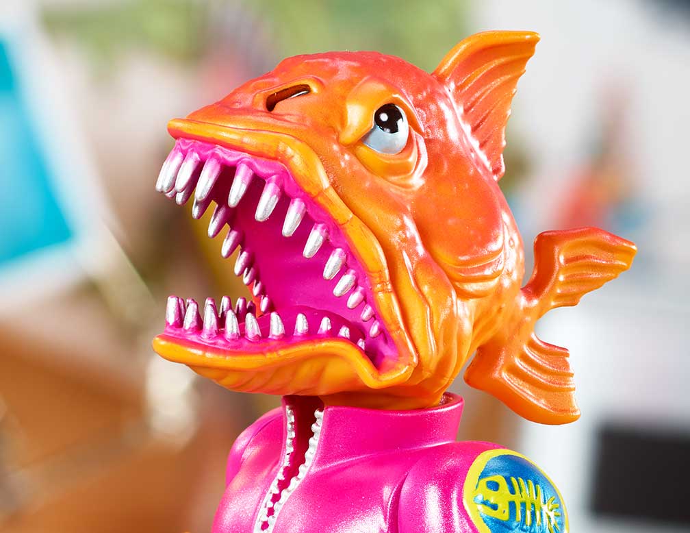 Long before he became “piranhoid,” Karkass had evil in his gills. Featuring a piranha’s toothy grin and removable fish fists, this nemesis is casually dressed in sneakers and a track jacket.Clambo