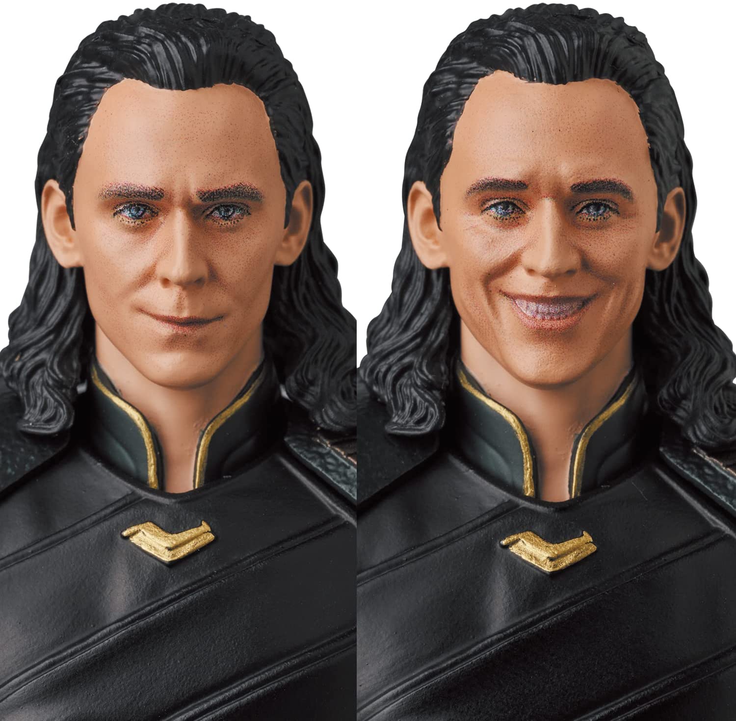 Pre-orders have gone live for a new Loki figure from Medicom Toys. They have revealed an Avengers: Infinity War – MAFEX Loki 6″ Scale Figure. The figure includes two interchangeable portraits, a few swap out hands, two swords, two daggers, a Tesseract, and a fabric cape. Loki stands at 6.3″ tall. The figure is priced at about $80 is Japan, and about $105 in the US. Look for the figure to be released in the Third Quarter of 2022. See the new photos after the jump.