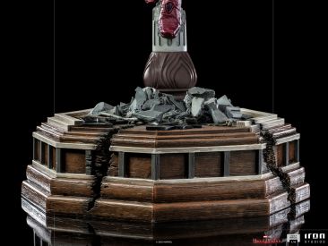 Above the floor of her house that was created involuntarily with the powers of manipulation of reality through her Chaos Magic, the beautiful and powerful red-black figure floats with a red energy field of her psionic powers, flowing in her rear and descending to the ground remodeling the scene, finally fulfilling the myth of the prophecy marked in the mystic book Darkhold. Thus Iron Studios presents its statue “Scarlet Witch – Wandavision – Legacy Replica 1:4”, immortalizing the avenger at the time of her transformation into the Scarlet Witch, featured in the final episode of the series Wandavision on the Disney+ streaming channel.