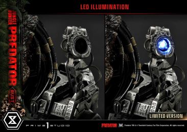 We have outfitted the Jungle Hunter Predator Bust, Limited Version with the look that everyone has been clamoring for: a closed-mouthed, serious Predator! This head will give your Jungle Predator Statue that cunning, analytical look that Predators are capable of…and in fact, make them more frightening! Furthermore, we have equipped this bust with an LED Illuminated Plasma Cannon, so that you can proudly display this beast as it is ready to lay waste to everyone around it.