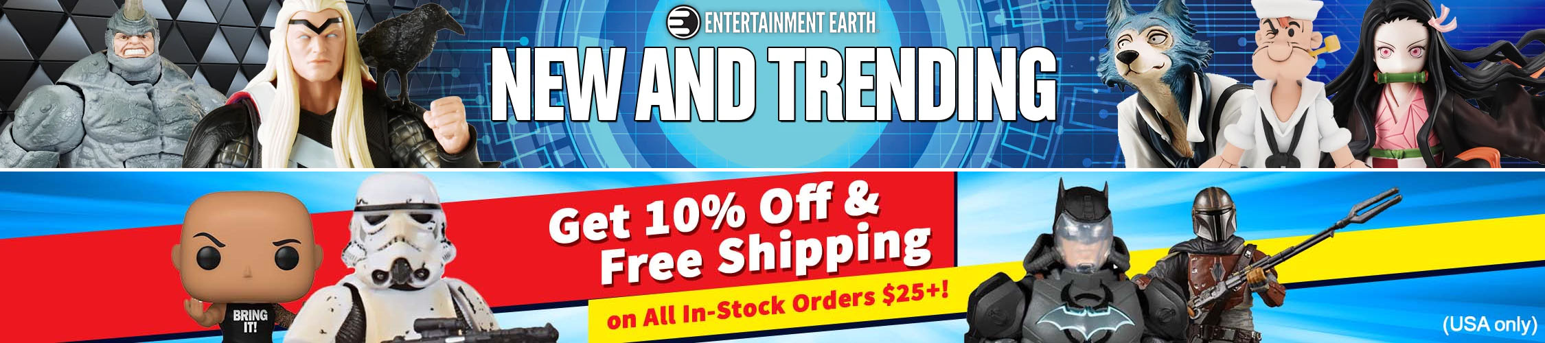 Here’s the latest update from sponsor Entertainment Earth. They are running a new sale, with 10% off and Free Shipping on all in-stock orders over $25 (Discount applied at checkout). You can also see some of their new and trending items below.