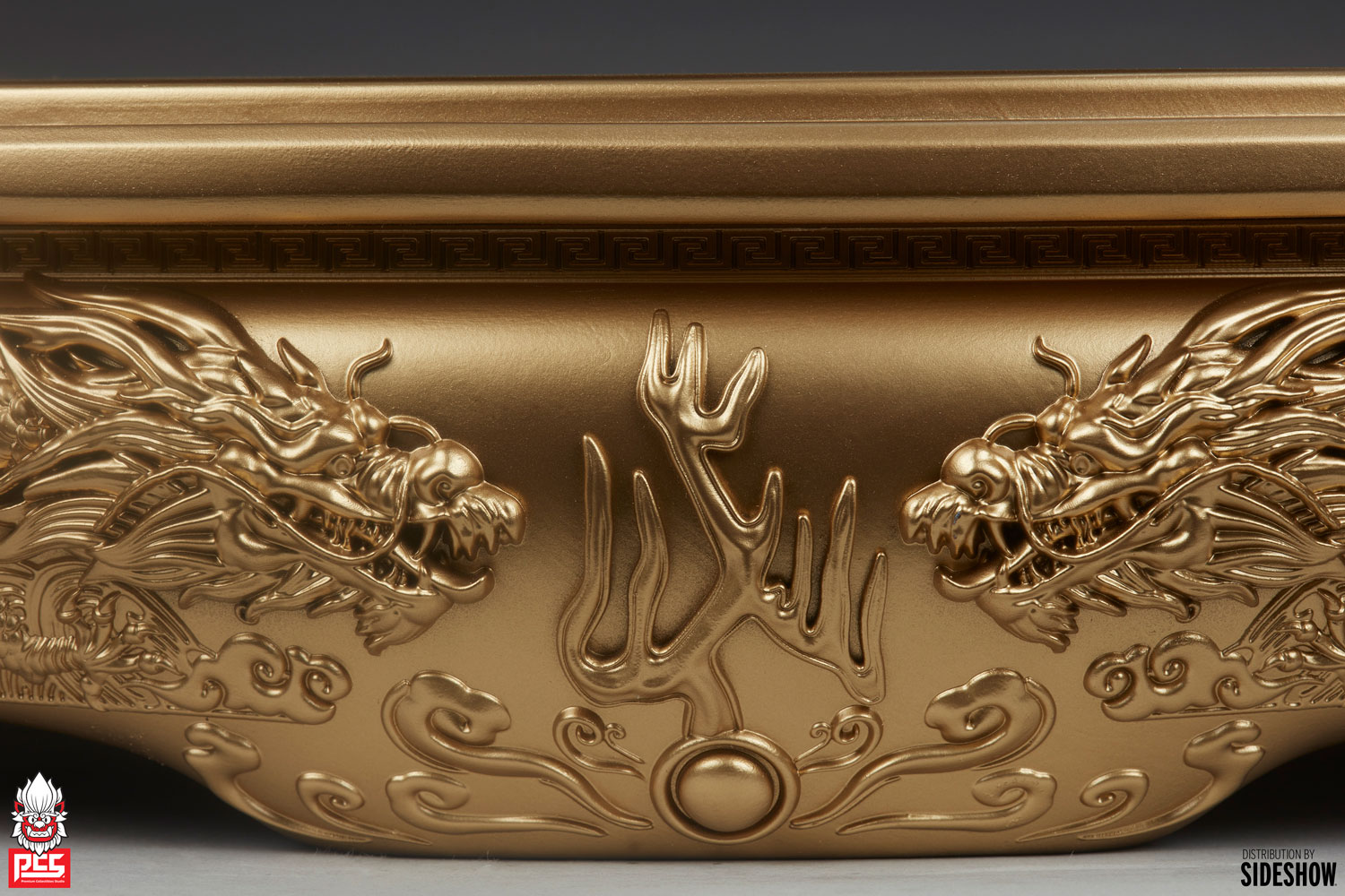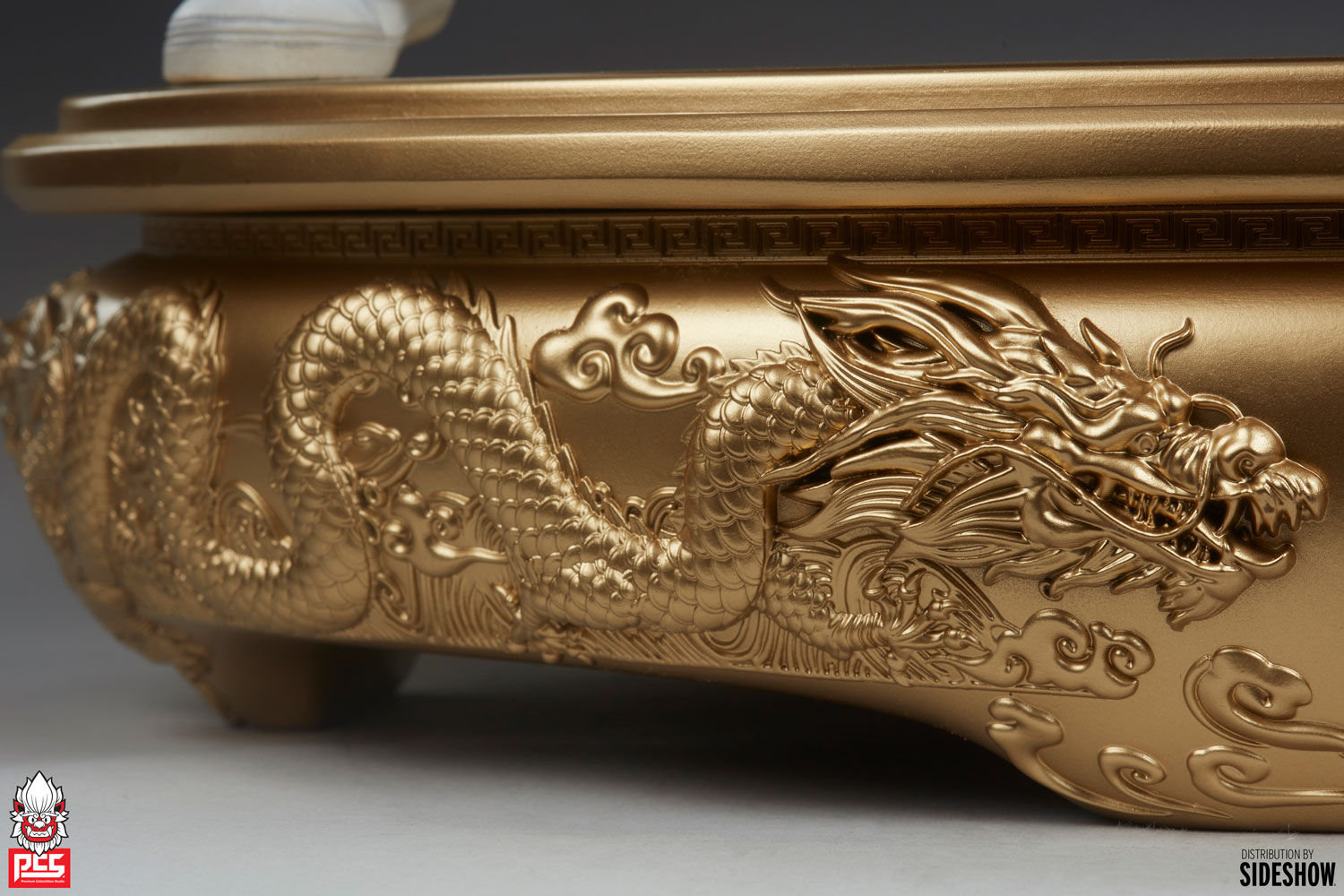 Inspired by an iconic era of his prolific career, the Bolo Yeung: Jeet Kune Do Tribute Autograph Edition 1:3 Statue is a mixed media collectible with a fully sculpted athletic physique costumed with white fabric gi pants and a black fabric belt to signify his martial arts accomplishments. As a practitioner of Jeet Kune Do, a martial arts philosophy founded by Bruce Lee, he strikes a wide stance, light on his feet as he flexes his muscles. Bolo Yeung’s portrait features a stern expression and a short style haircut sculpted to frame his face. He stands on a gold-colored base with sculpted dragon details. Limited to an edition of only 100 pieces, this collectible statue makes a perfect centerpiece for any fan’s action movie display.