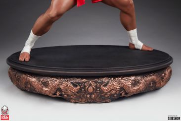 Inspired by an iconic era of his prolific career, the Bolo Yeung: Kung Fu Tribute Autograph Edition 1:3 Statue is a mixed media collectible with a fully sculpted athletic physique costumed with red and black fabric shorts and a red fabric belt. The hanging tails of the white and red headband sculpted onto his portrait are also fabric for added realism. Standing on a bronze-colored base with dragon detailing, he strikes a wide stance and stays light on his taped feet in preparation for another fight. Bolo Yeung’s furious expression is framed by shaggy black hair, and his flexing muscles indicate that he is a formidable foe. Limited to an edition of only 100 pieces, this statue makes a perfect centerpiece for any fan’s action movie display.