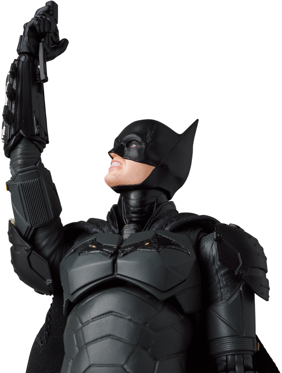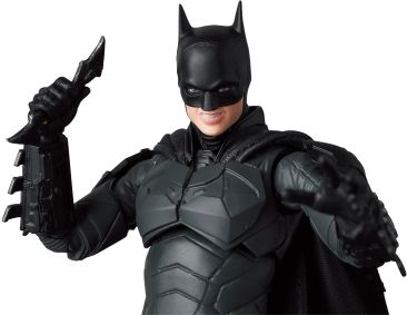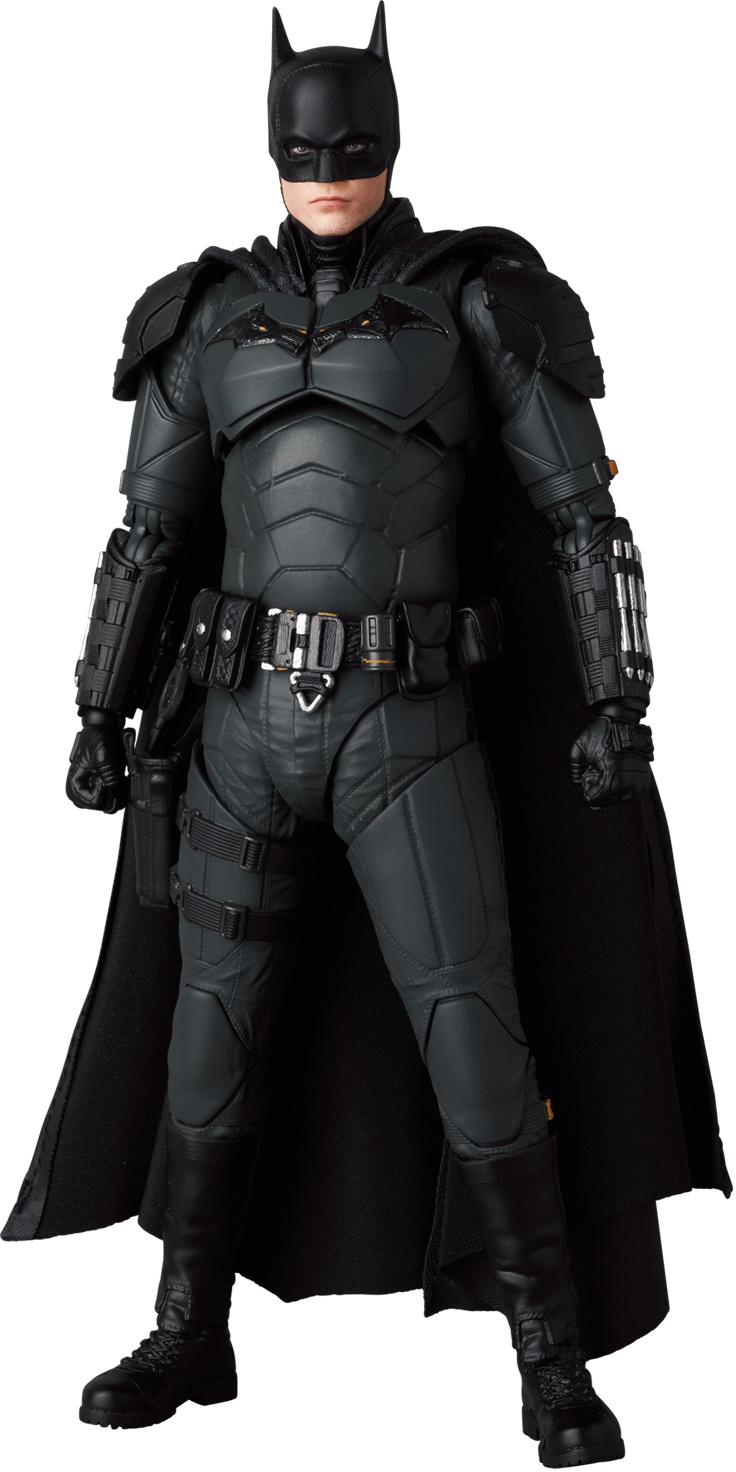 Medicom has revealed a new MAFEX The Batman Figure, and pre-orders are now available for the figure. The Batman will stand at 6.3″ tall. The figure includes two masked head sculpts, 2 unmasked head sculpts, multiple interchangeable hands, w wired fabric cape, a cowl accessory, an alternate chest plate, a grappling hook and holster, an a flare. The Batman figure is due for release in Summer 2023. In Japan, the figure will retail for about $84, while the US release will be about $110. You can pre-order at the links below, and see photos after the jump.