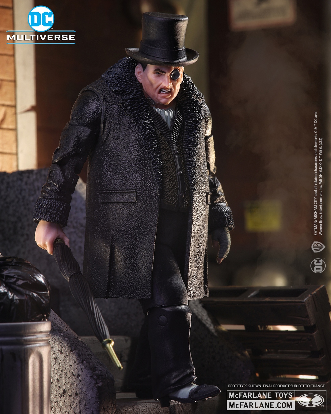 The next teaser for McFarlane Toys DC Multiverse Batman Arkham City Build A Wave figures has dropped and it’s The Penguin! Featuring his in game look, the stubby gangster should be joining Batman and 2 others soon. Stay tuned for more drops/details and the official reveal of the BAF.