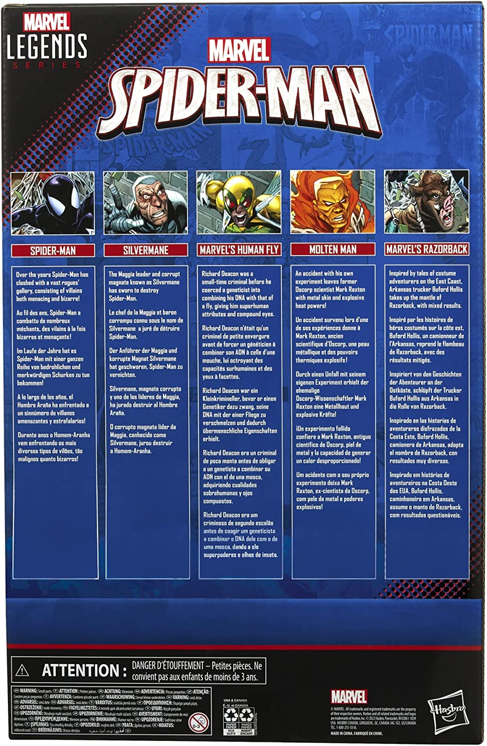 • MARVEL SPIDER-MAN MULTIPACK: This Spider-Man action figure multipack features Spider-Man, Silvermane, Marvel’s Human Fly, Molten Man, and Marvel’s Razorback 6-inch-scale toys