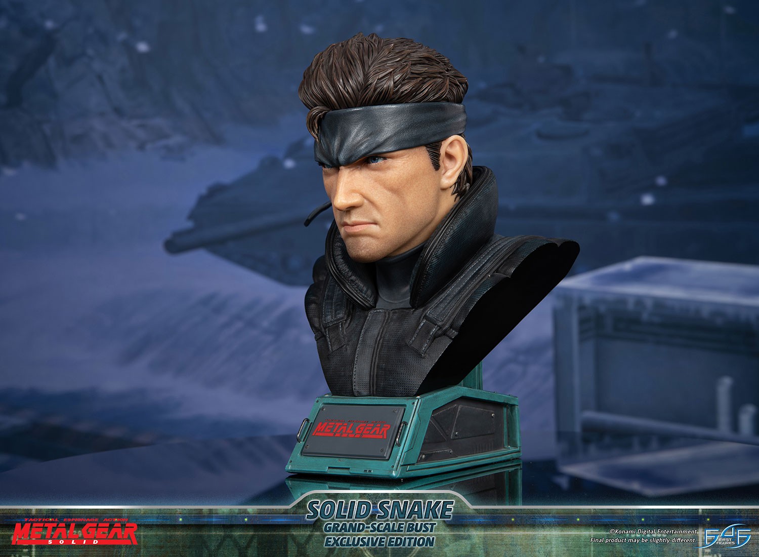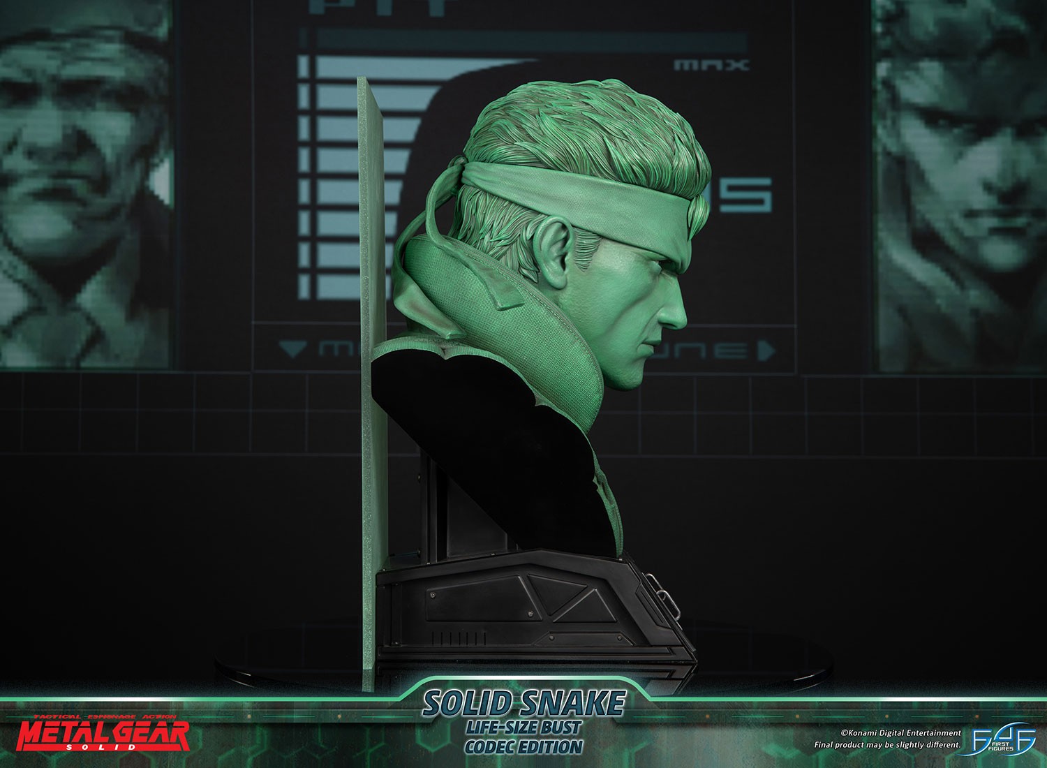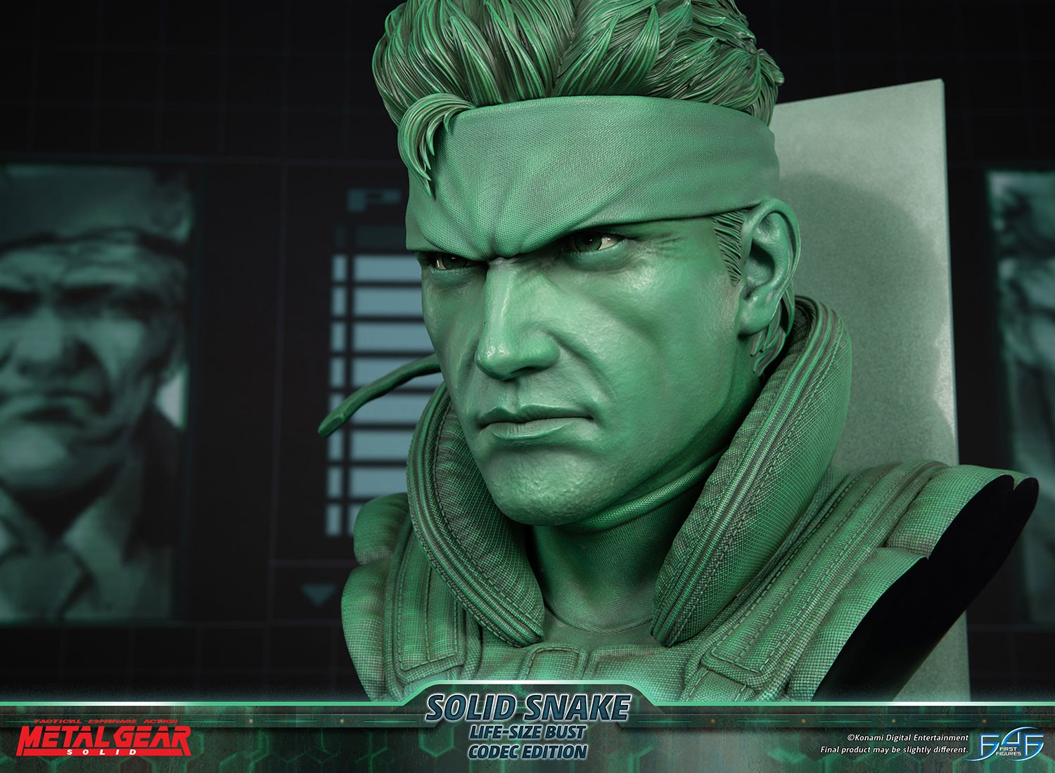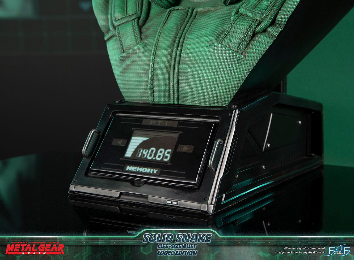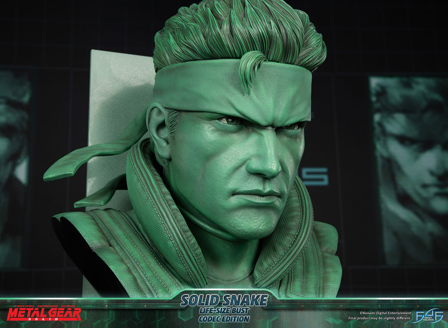A new series of pre-orders have been opened by First 4 Figures, They are releasing busts based on Solid Snake from the original Metal Gear Solid video game. They are offering multiple versions of the bust in two scales. They are producing the bust in Life Size scale, which stands roughly 22″ tall. They are also producing the Grand Scale busts, which are about 12″ tall. There are three different versions offered in each scale. There is the Standard Edition, the Exclusive Edition, and the Codec Edition. The Exclusive Edition adds four interchangeable computer screens to the pedestal. The Codec Edition features a green paint scheme to pay homage to the communication device from the game, which includes two interchangeable computer screens for the pedestal.