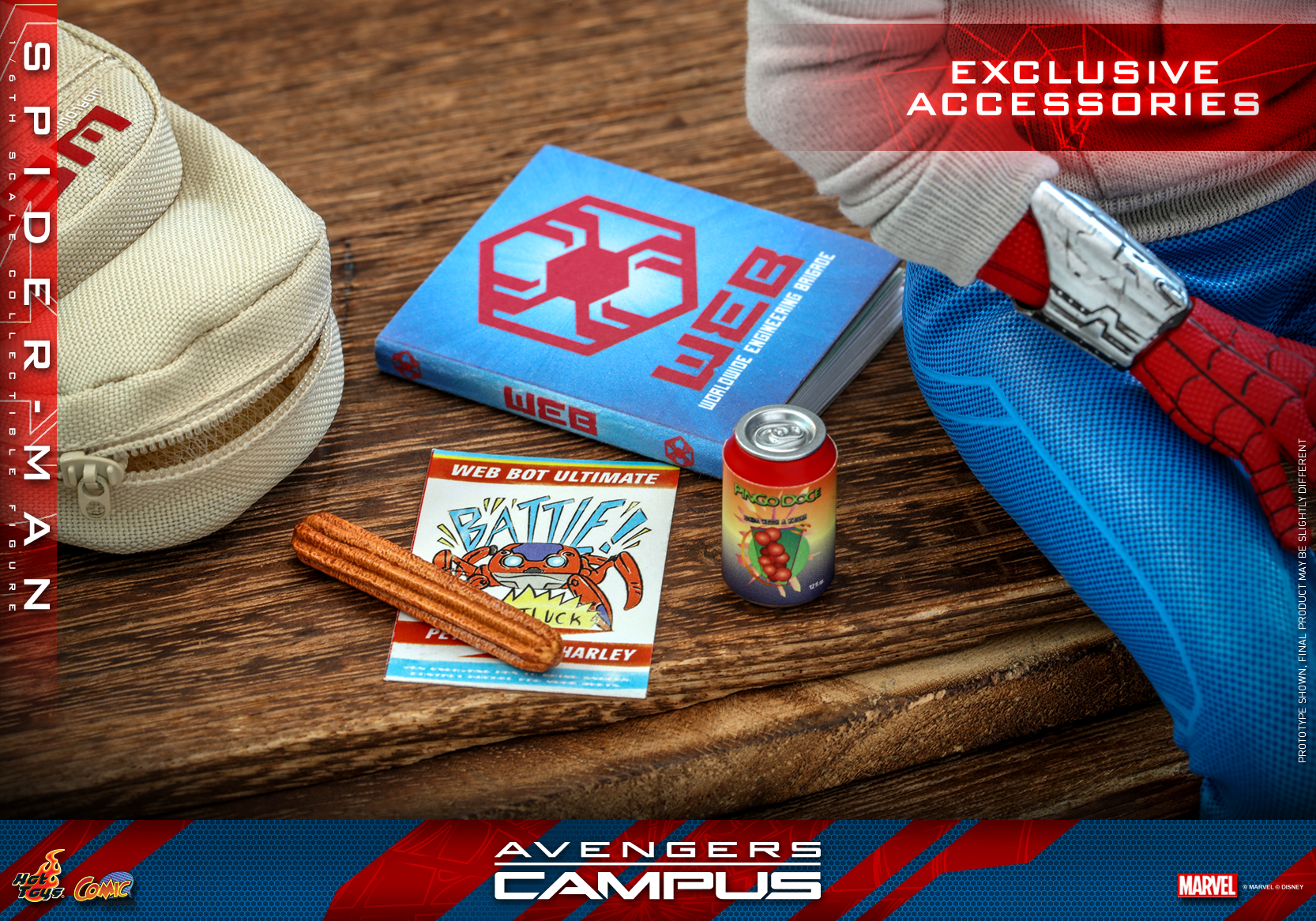 . The figure stands at 11.2″ tall, with 30 points of articulation. It includes a removable sweatshirt, a textbook, a flyer, a can of soda. a churro, a backpack, a spider-bot, multiple interchangeable hands, multiple swap out eye pieces, and a display stand.The figure is scheduled to ship out between the end of this year and early 2023. Pricing and pre-orders haven’t been revealed just yet. Read on for the full update and new photos.