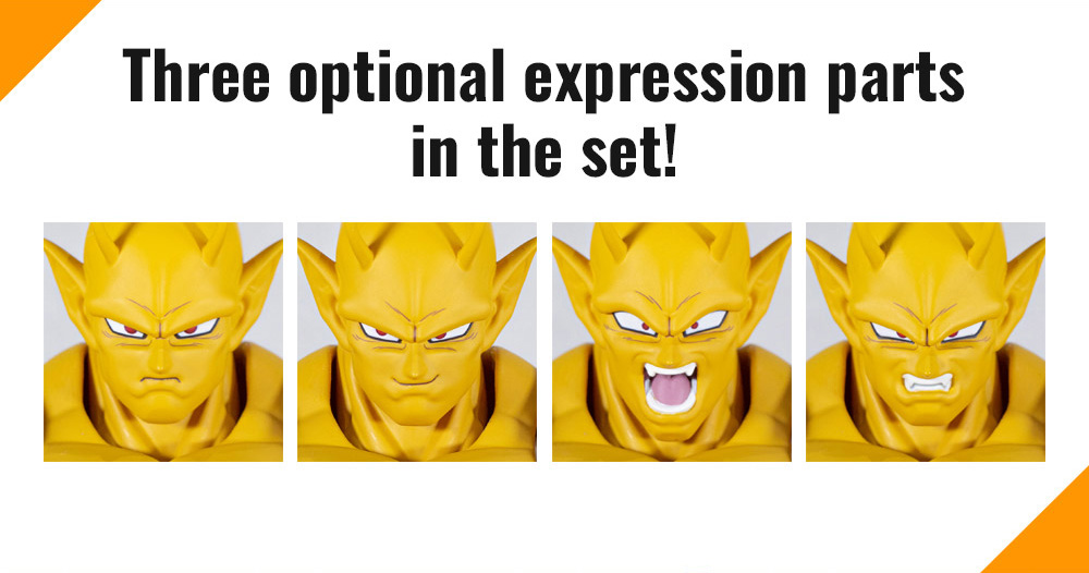The image from the movie is reproduced to the last detail, like the figure’s balance of the head and body, the buffed up muscles, and the creased look of the martial arts uniform! Three types of facial expression parts are included as accessories, including the face shouting when Piccolo confronts Cell Max.