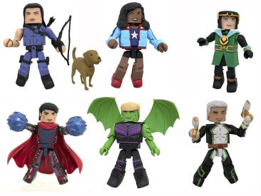 A Diamond Select Toys release! Young Avengers, assemble! The next Marvel Minimates Deluxe Box Set is here, and it’s all about the Young Avengers! Featuring team mainstays Kate “Hawkeye” Bishop, Wiccan and Hulkling, plus new members America Chavez, Kid Loki and Noh-Varr, it’s a veritable who’s who of rising Marvel superstars! Plus, the set comes with a figurine of Hawkeye’s dog Lucky, a.k.a. Pizza Dog! Each Minimate features up to 14 points of articulation and detailed paint applications, and all six Minimates come packaged in a full-color window box with an illustrated fifth panel featuring original Minimates artwork. Designed and illustrated by Barry Bradfield! (Item #OCT222363, SRP: $49.99)