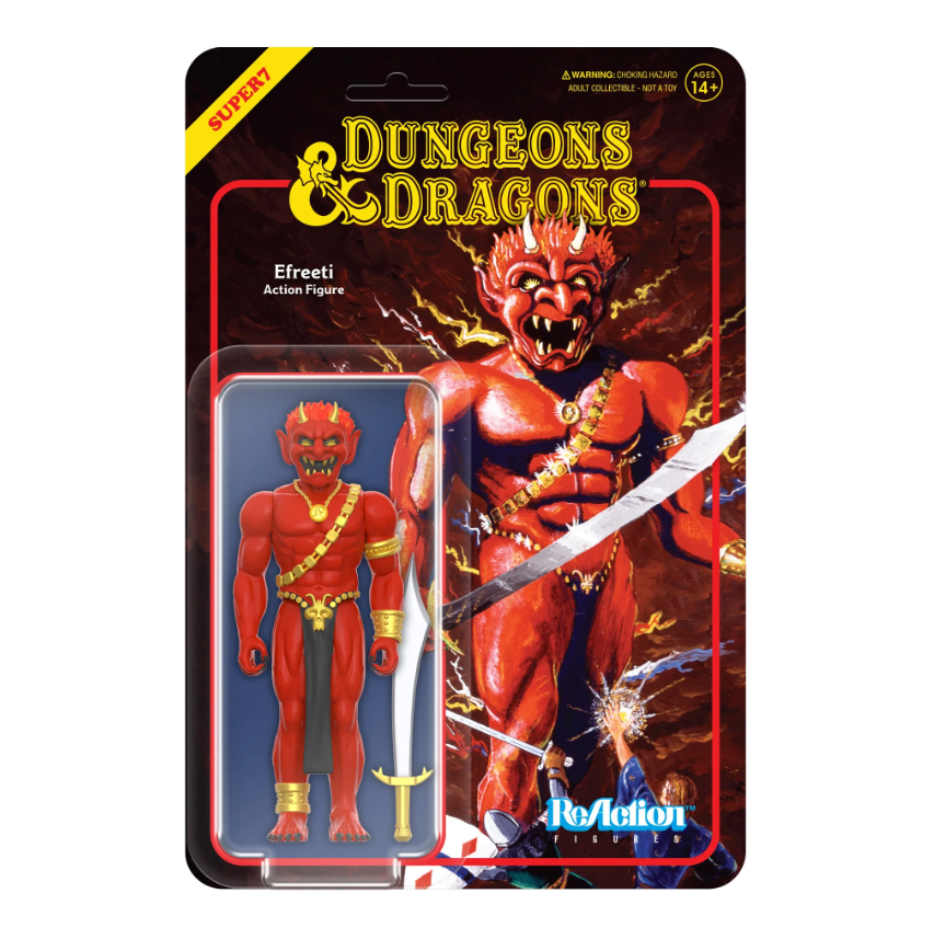 At nearly 12 feet tall, 2000 lbs, and partly made from solidified fire, if you or your questing party come across an Efreeti, your adventure is going to heat up very quickly! This 3.75” scale articulated Dungeons & Dragons ReAction Figure of an Efreeti is inspired by the cover of the 1e Dungeon Master Guide and depicts the genie from the Elemental Plane of Fire looking particularly devilish with included Scimitar accessory. Level-up your collection of fantasy and adventure characters with the Dungeons & Dragons ReAction Figure of an Efreeti!