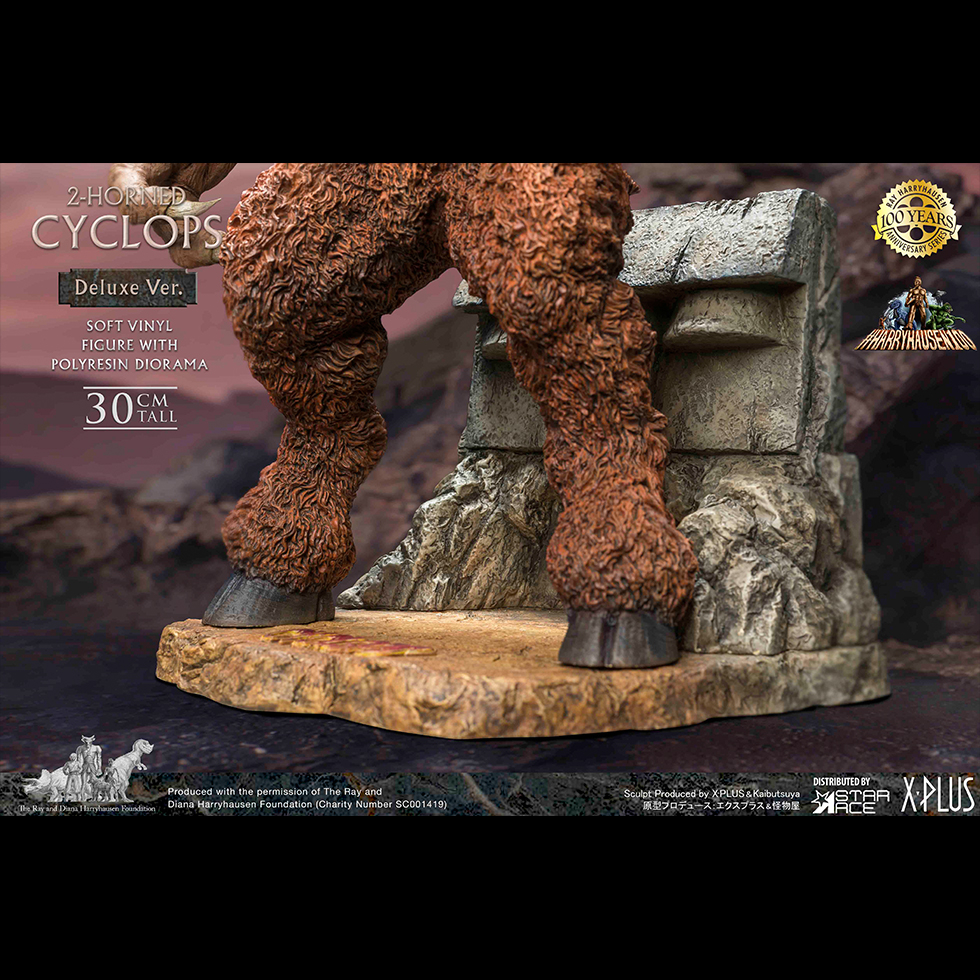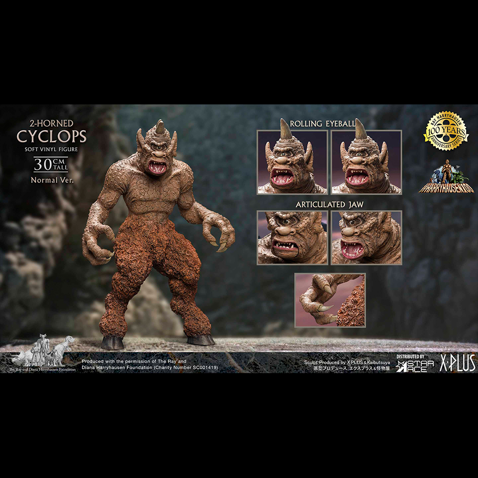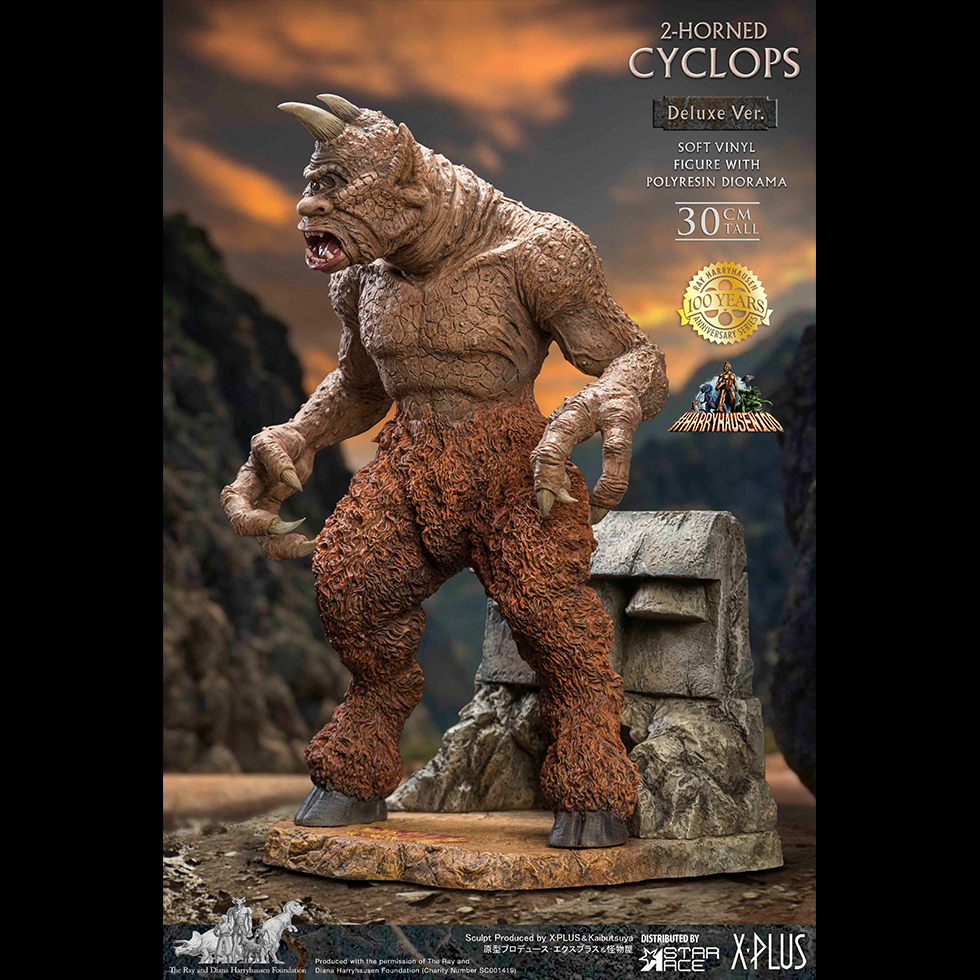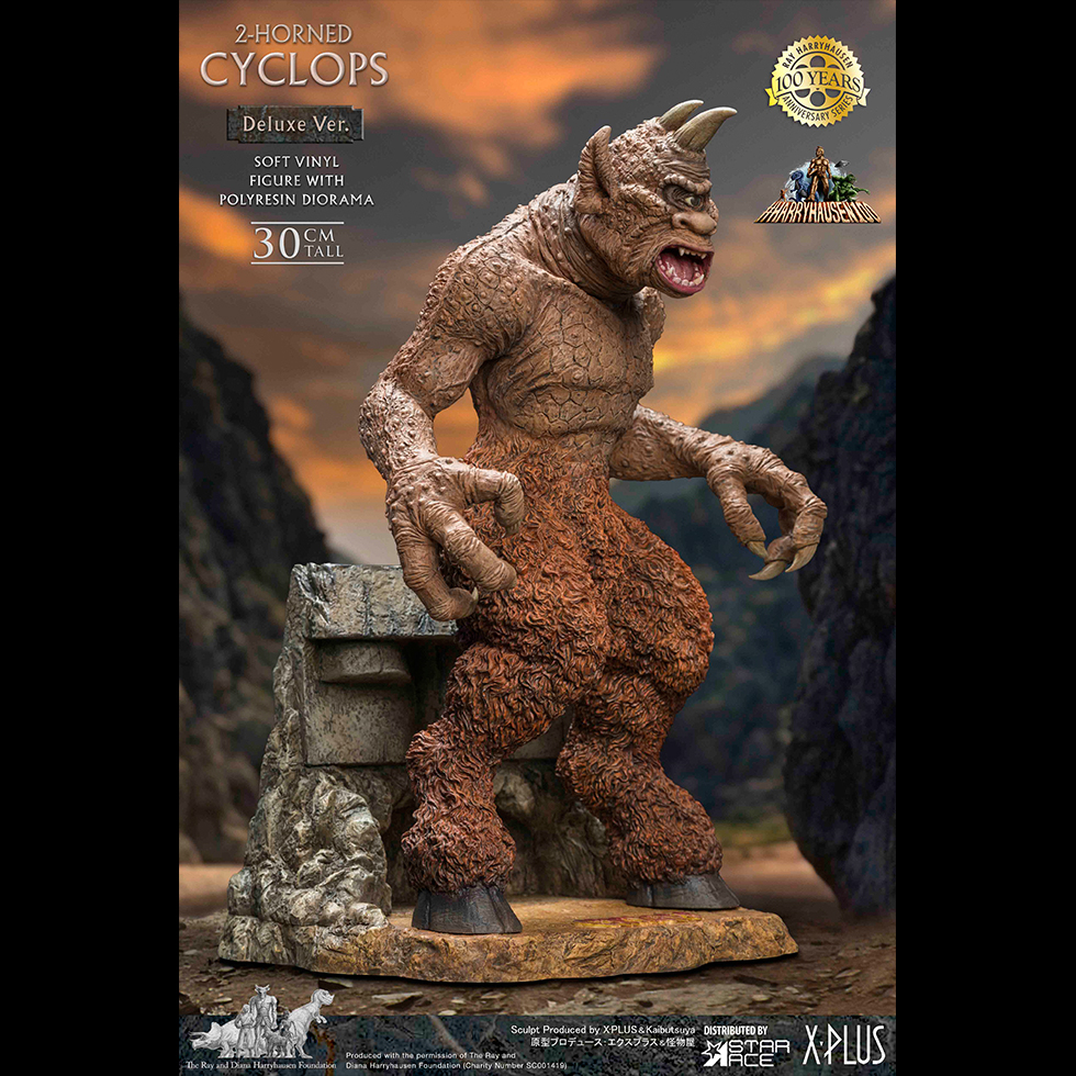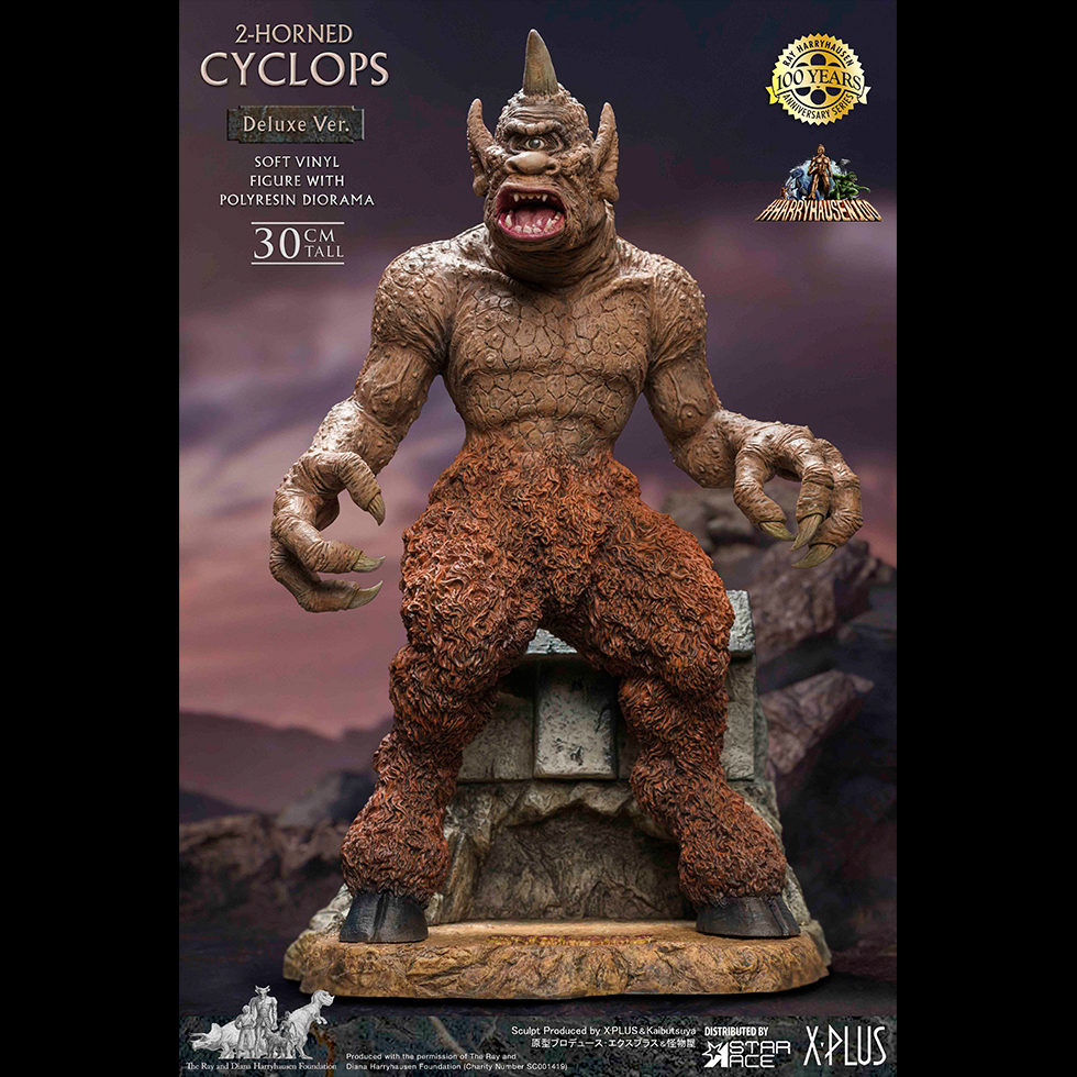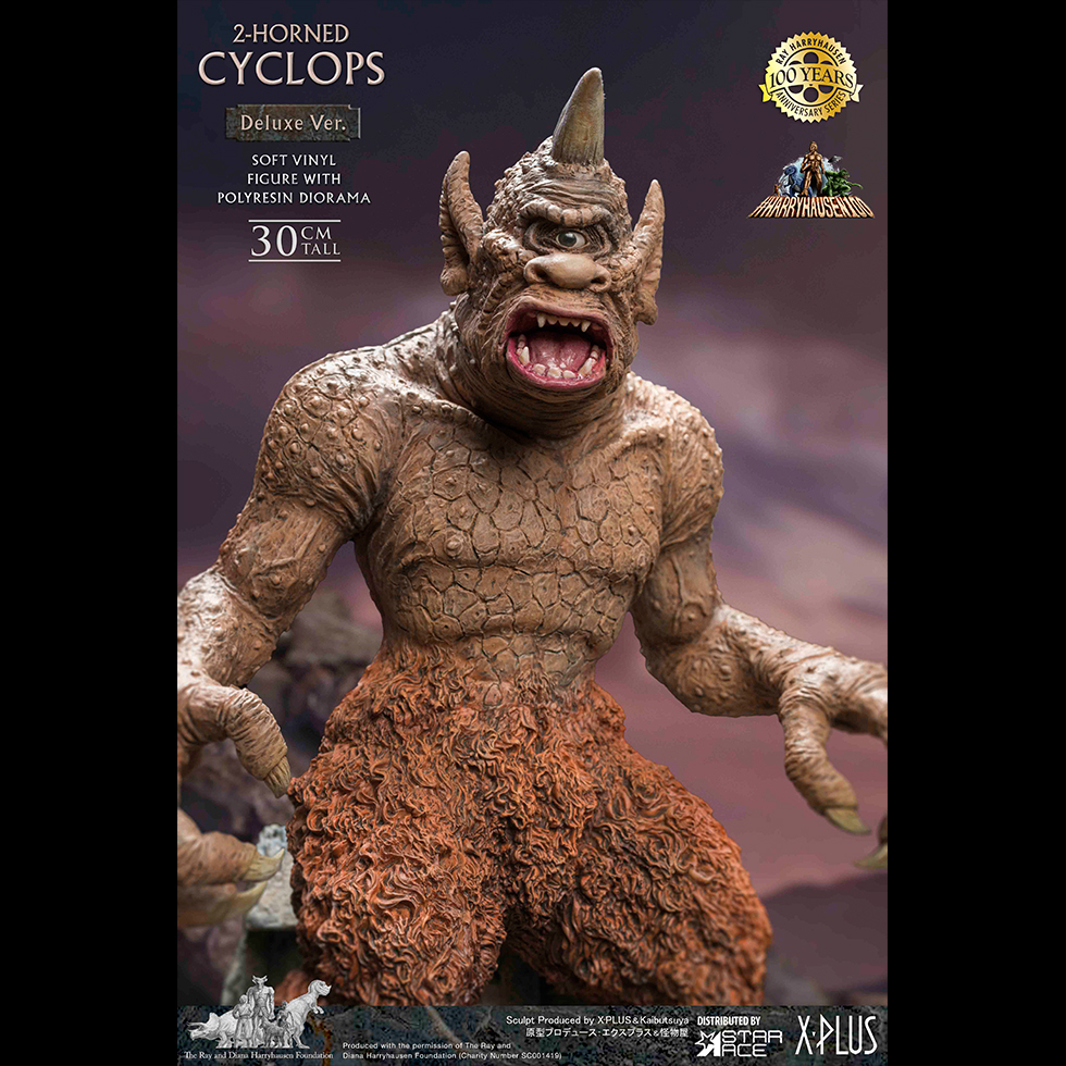 The master of stop-motion special Effects, Ray Harryhausen, created many memorable creatures. One of the most popular is the Cyclops and he did more than one version. Star Ace had such great success with the original single horned Cyclops that now they are bringing out the 2-horned version, most famous for fighting a dragon.