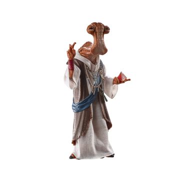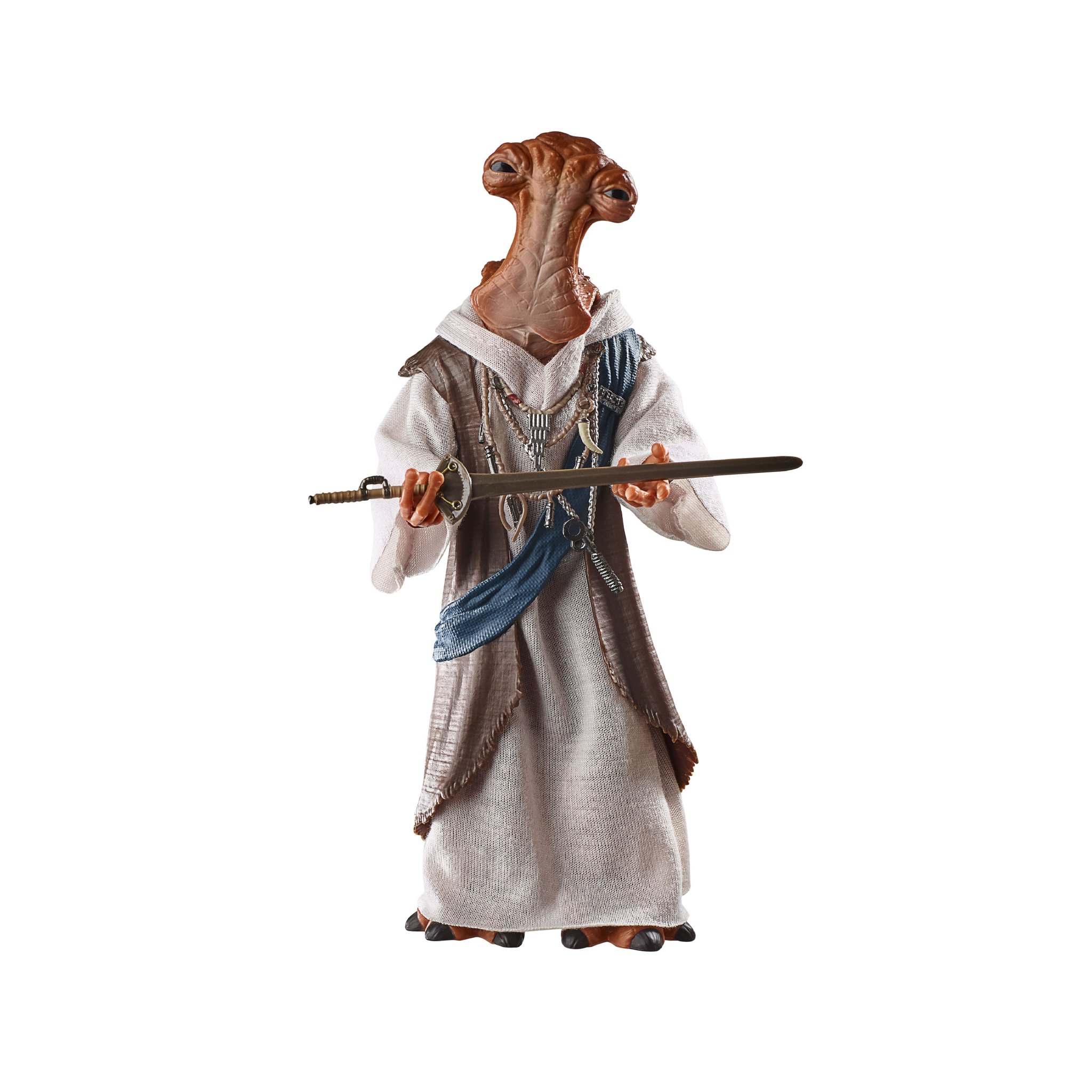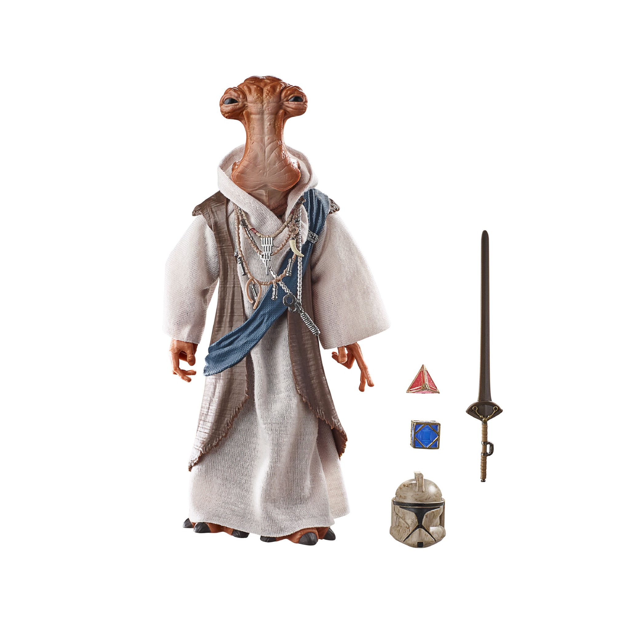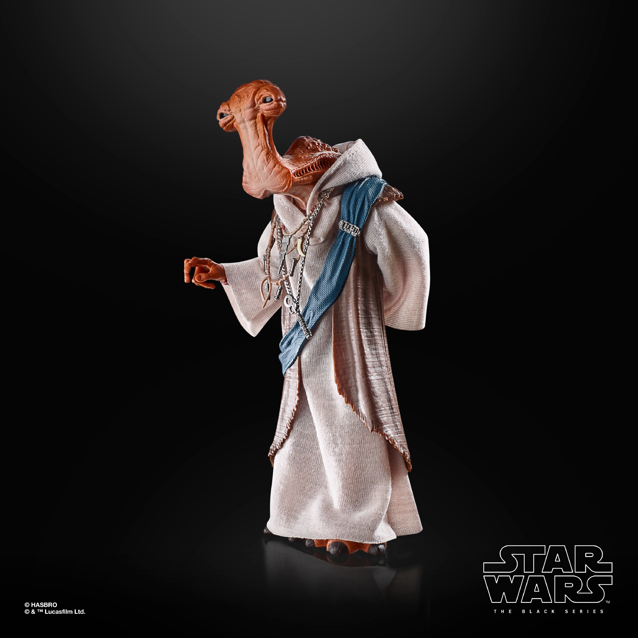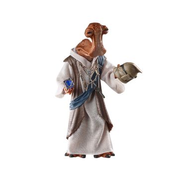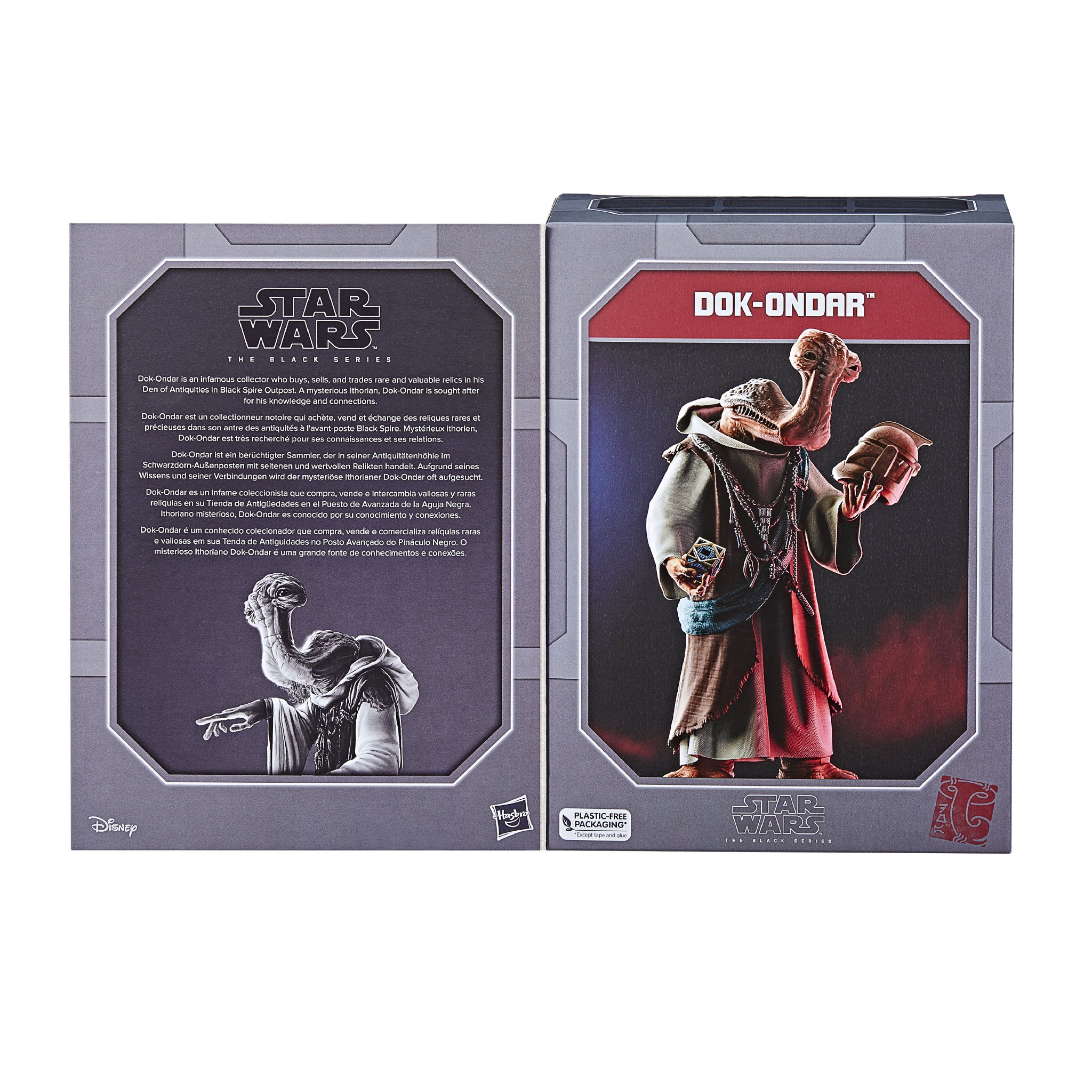 STAR WARS fans and collectors can imagine scenes from the STAR WARS galaxy with this premium 6-inch STAR WARS: THE BLACK SERIES DOK-ONDAR figure, inspired by the character’s appearance in STAR WARS entertainment. Known as the gatekeeper of the black market, mysterious Ithorian Dok-Ondar is an infamous collector who buys, sells, and trades rare and valuable relics in his Den of Antiquities in Black Spire Outpost. He has amassed an impressive collection of unique artifacts that is unrivaled in the galaxy and is sought after for his knowledge and connections.  Fans and collectors can display this fully articulated figure featuring premium detail and multiple points of articulation in their collection. Includes figure and 4 accessories, including a sword of Khashyun accessory.