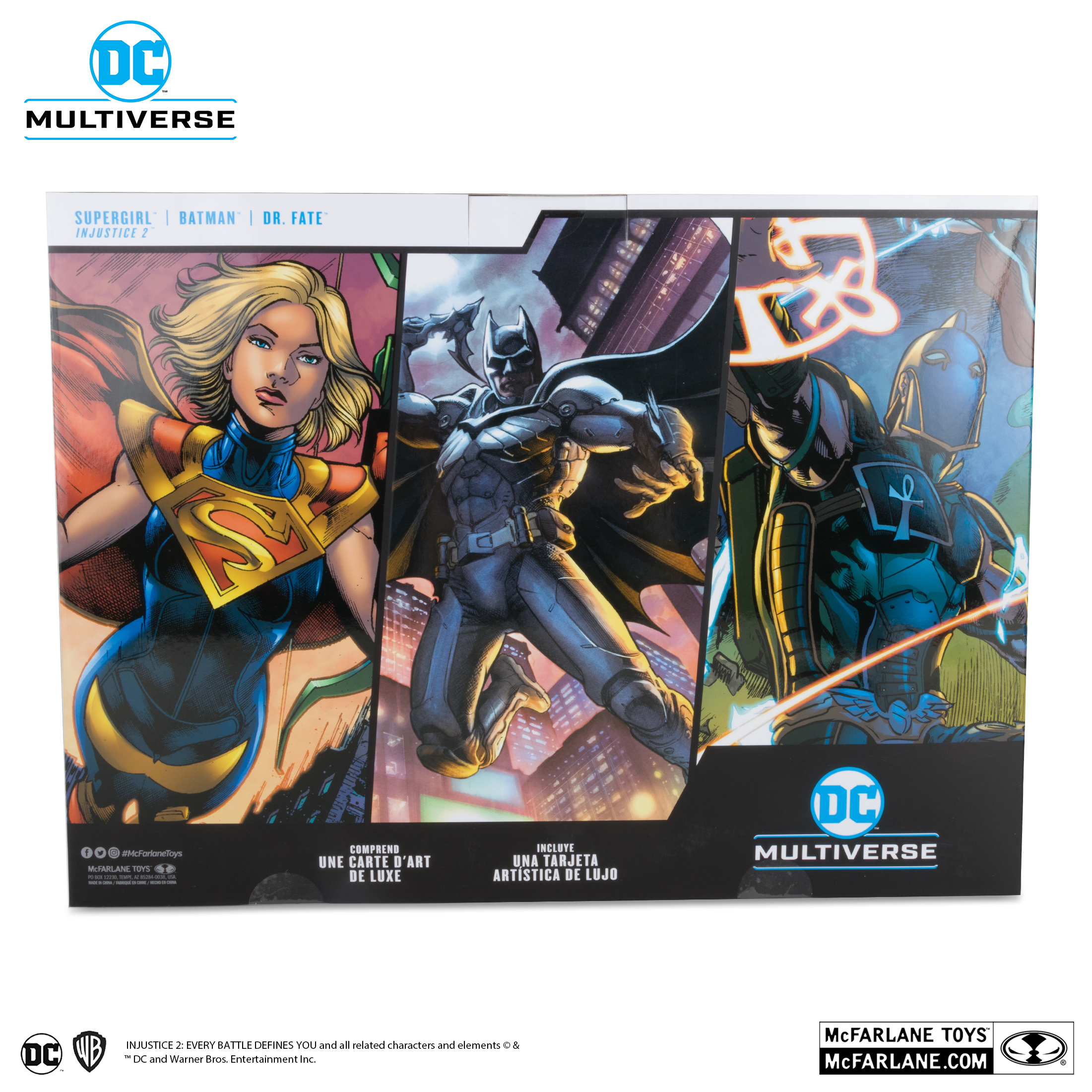 McFarlane Toys have dropped a retailer exclusive Injustice 2 3-pack for DC Multiverse.  Batman, Dr. Fate and Supergirl get alt colorings over on Amazon.  Retail price is $39.99 which isn’t bad for 3 figures normally $19.99.  Ship date is end of September 2023.  Read on for pics and details, hit the link to snag your copy!