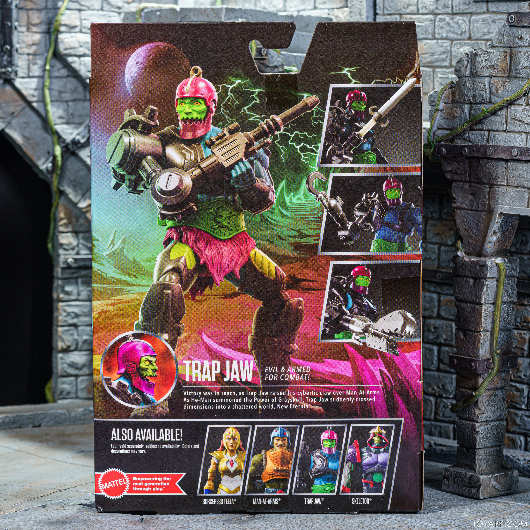 Sharing out a quick photo set for a recent release from Mattel’s Masters of the Universe Masterverse – New Eternia Trap Jaw. The line refreshes with this wave, giving us some very purdy boxes with character specific art. The New Eternia sub-theme of the line is basically modern era Classics, modern tech yet classic renditions of core characters. Trap Jaw is a character I try to get every time they put one out, I love the mech aspect and that color palette just rocks. This one is no different, capturing a mix of the toon and toy versions with modern articulation. All the key points are hit in a modern offering, so 10/10 for me on the Trap Jaw scale.