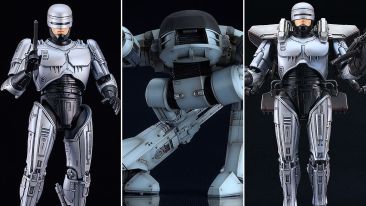 Back in early 2021, Good Smile Company released a Hagane Works Robocop and Moderoid ED-209 Model Kit. They are re-releasing both of those, and adding a Moderoid Robocop 3 Model Kit. While the previous Hagane Works Robocop was a figure that featured zinc alloy construction, it has been changed to an all-plastic Moderoid model kit. Each Robocop will stand at about 6.7″ tall. ED-209 will stand at 7.9″ tall.