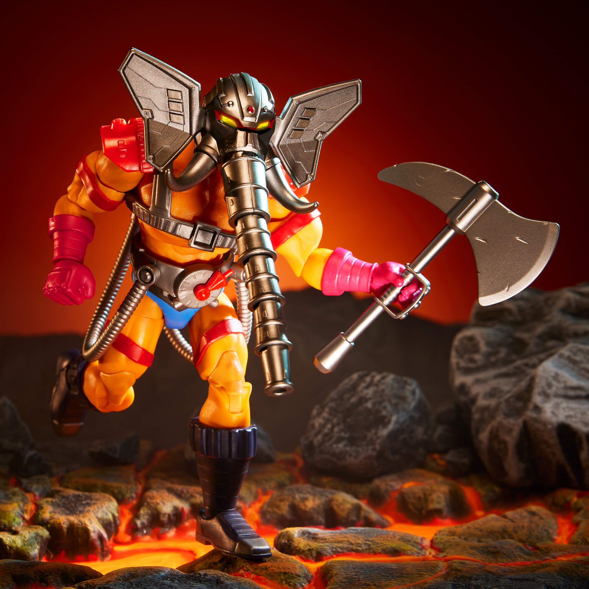 Snout Spout, the Eternian firefighting cyborg, is back and bigger than ever. This oversized Masterverse figure of the heroic firefighter towers over most villains. With a removable water tank and hoses along with his iconic axe, he can douse fires and evil-doers with his water blast effect.