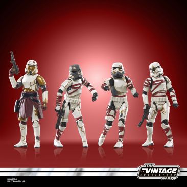 Set after the fall of the Empire, Ahsoka follows former Jedi Knight Ahsoka Tano as she investigates an emerging threat to a vulnerable galaxy. Fans can celebrate the legacy of STAR WARS, the action-and-adventure-packed space saga from a galaxy far, far away with this premium 3.75-inch scale STAR WARS: THE VINTAGE COLLECTION CAPTAIN ENOCH & THRAWN’S NIGHT TROOPERS figure pack inspired by the characters’ appearances in STAR WARS: AHSOKA. These figures feature premium detail, entertainment-inspired collector grade deco (including unique helmet and suit deco on all 4 figures) and design across product and packaging inspired by the original Kenner line. Includes 4 figures and 4 entertainment-inspired accessories including blasters.
