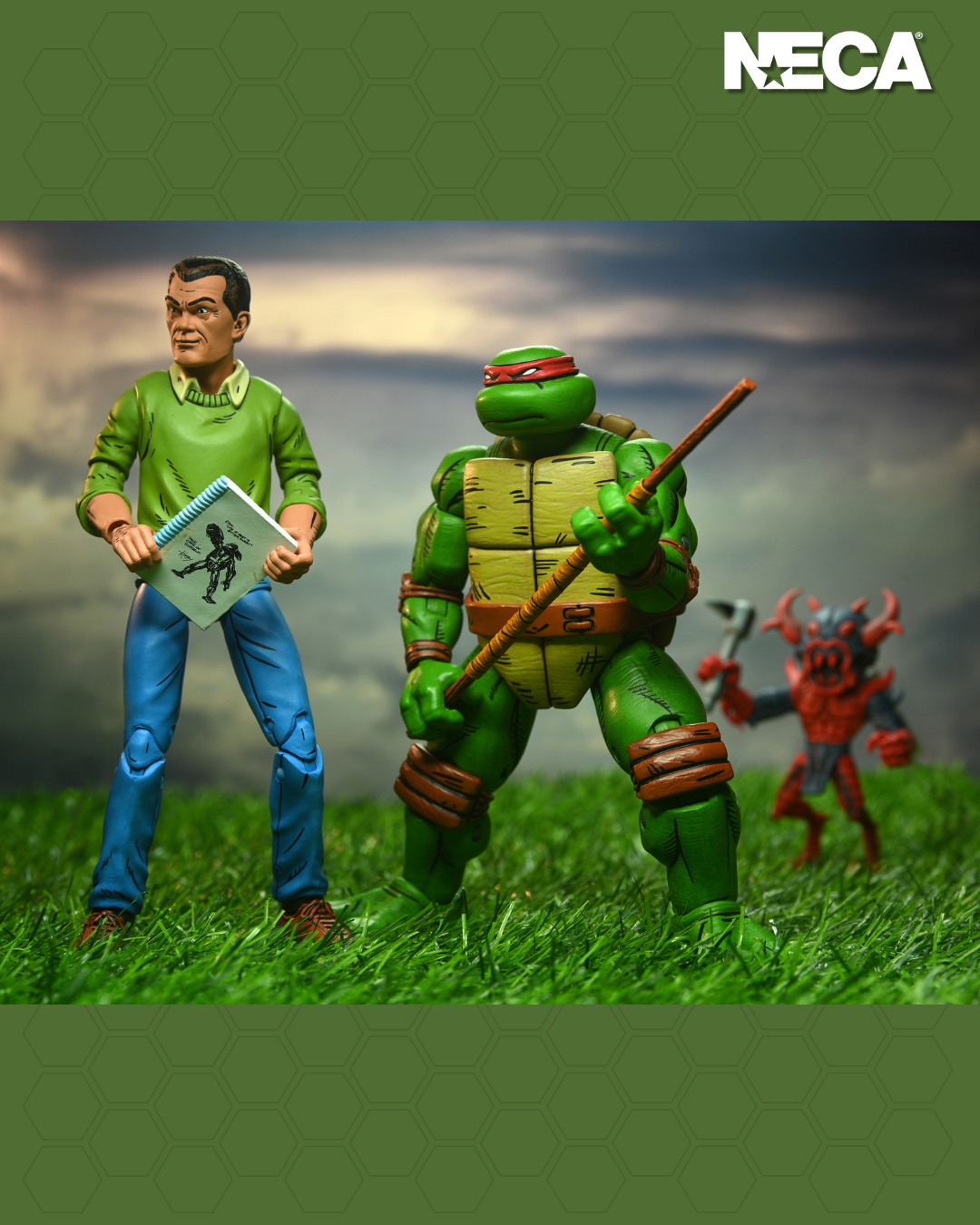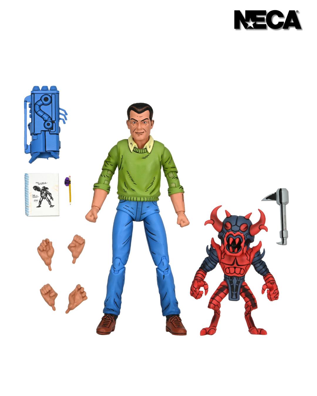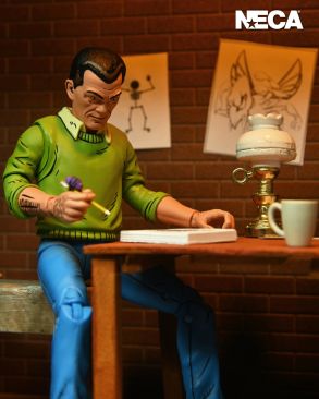 Hitting Target stores now is a new Teenage Mutant Ninja Turtles figure from NECA. They have shared photos and details for their Teenage Mutant Ninja Turtles (Mirage Comics) – Kirby 7″ Scale Figure. The character, an obvious homage to legendary comic artist Jack Kirby, appeared in an issue of the original TMNT comics as an artist whose drawing would come to life. The figure includes multiple interchangeable hands, a sketchbook, a monster, a pencil, and more. See details and photos below.